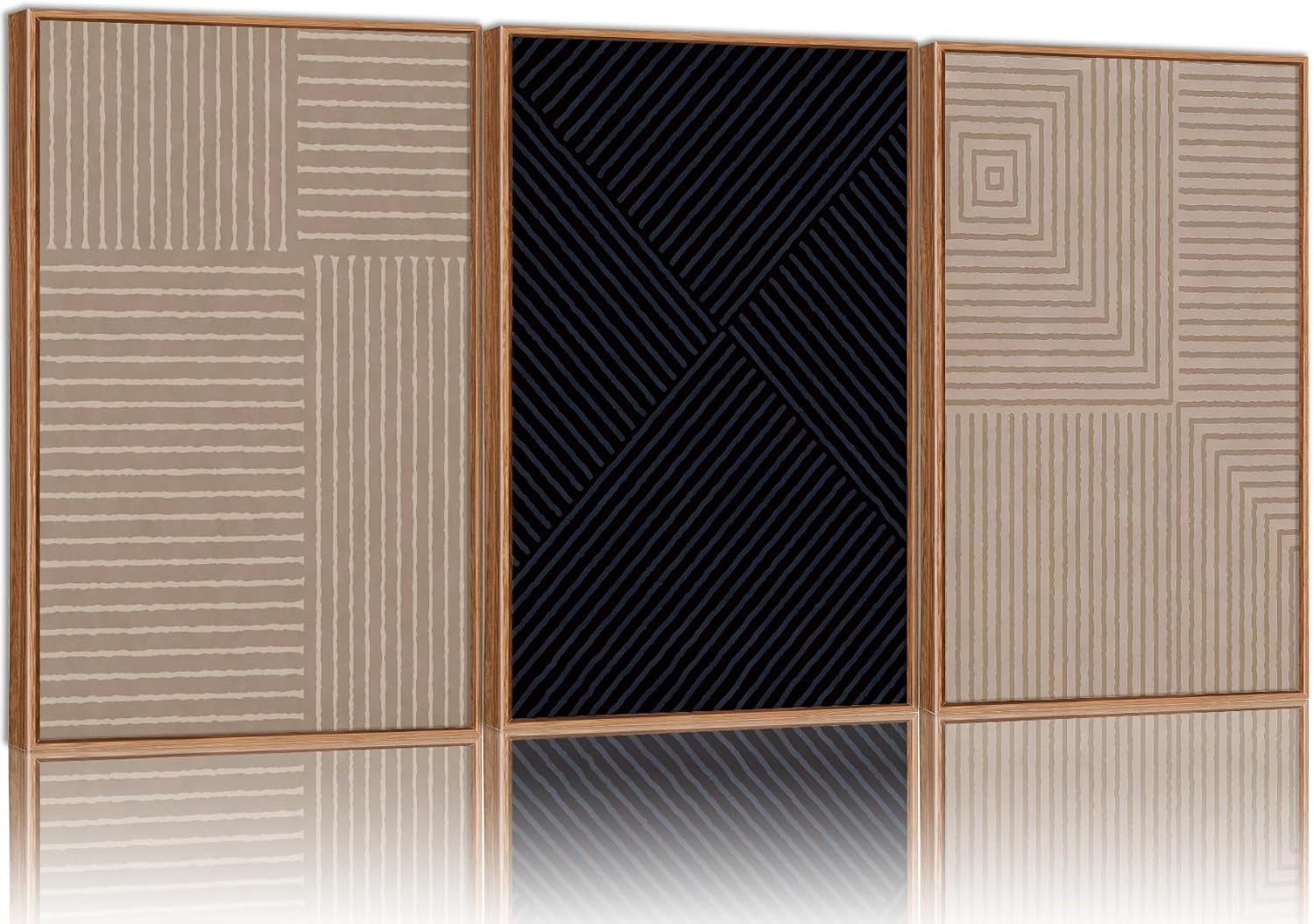 Tinonedraw Mid Century Modern Framed Canvas Wall Art Set of 3, Neutral Abstract Art Prints, Black and Brown Geometric Minimalist Wall Decor for Living Room Bedroom Office Dining Room 16"x24"x3