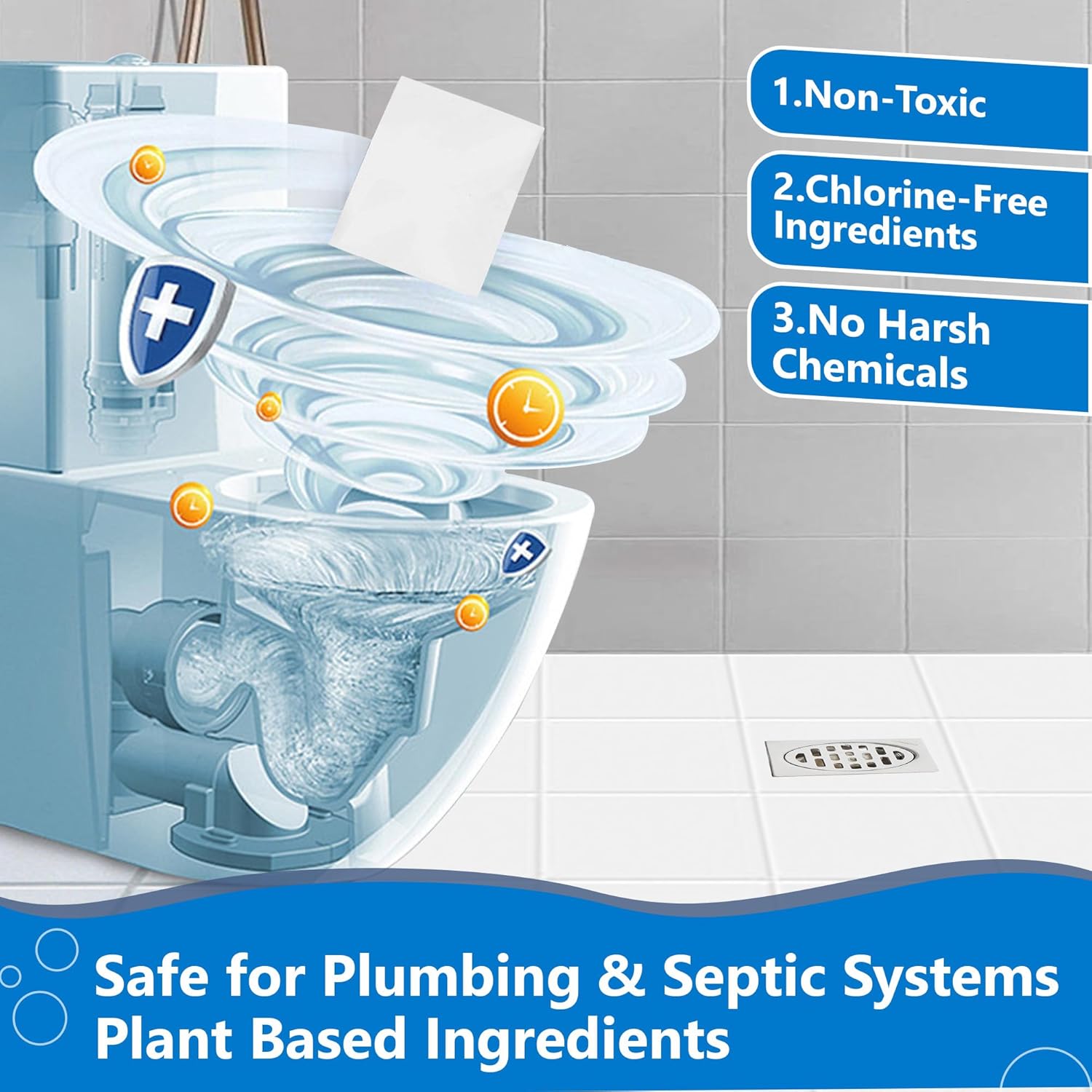 • Safe for Plumbing & Septic Systems: Made with neutral ingredients, these toilet bowl cleaner sheets are safe for both your skin and your toilet's internal components, plumbing, and septic system. Enjoy a worry-free cleaning experience with no risk of damage