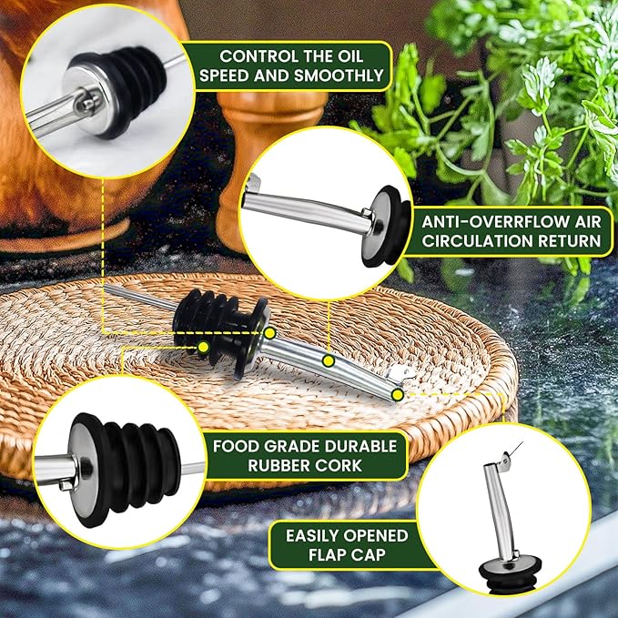 • 【EASY TO CLEAN】 : The Spouts Are Easy To Remove, Making The Oil Dispenser Easier To Clean. After Adding The Oil In The Bottle, You Need To Wipe The Mouth Of The Bottle, And After The Cap Is Inserted Into The Mouth Of The Bottle, You Need To Turn The Stopper To Make The Stopper Less Likely To Come Off