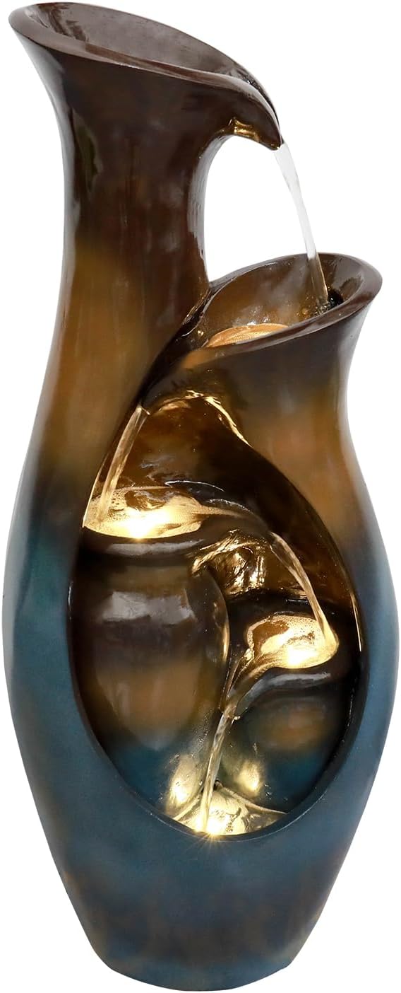 • 【LED Lighted Outdoor Waterfall Fountain with Modern Jar Design】The outdoor water fountain with modern Jar design and contemporary curves texture is the perfect addition to your indoor outdoor house and office decor. Interior pump keeps the water flowing circularly. And integrated LED lights illuminates the flowing water to add an element of visual charm and elegance. Creates a visually appealing and calming ambiance, especially in the evening.