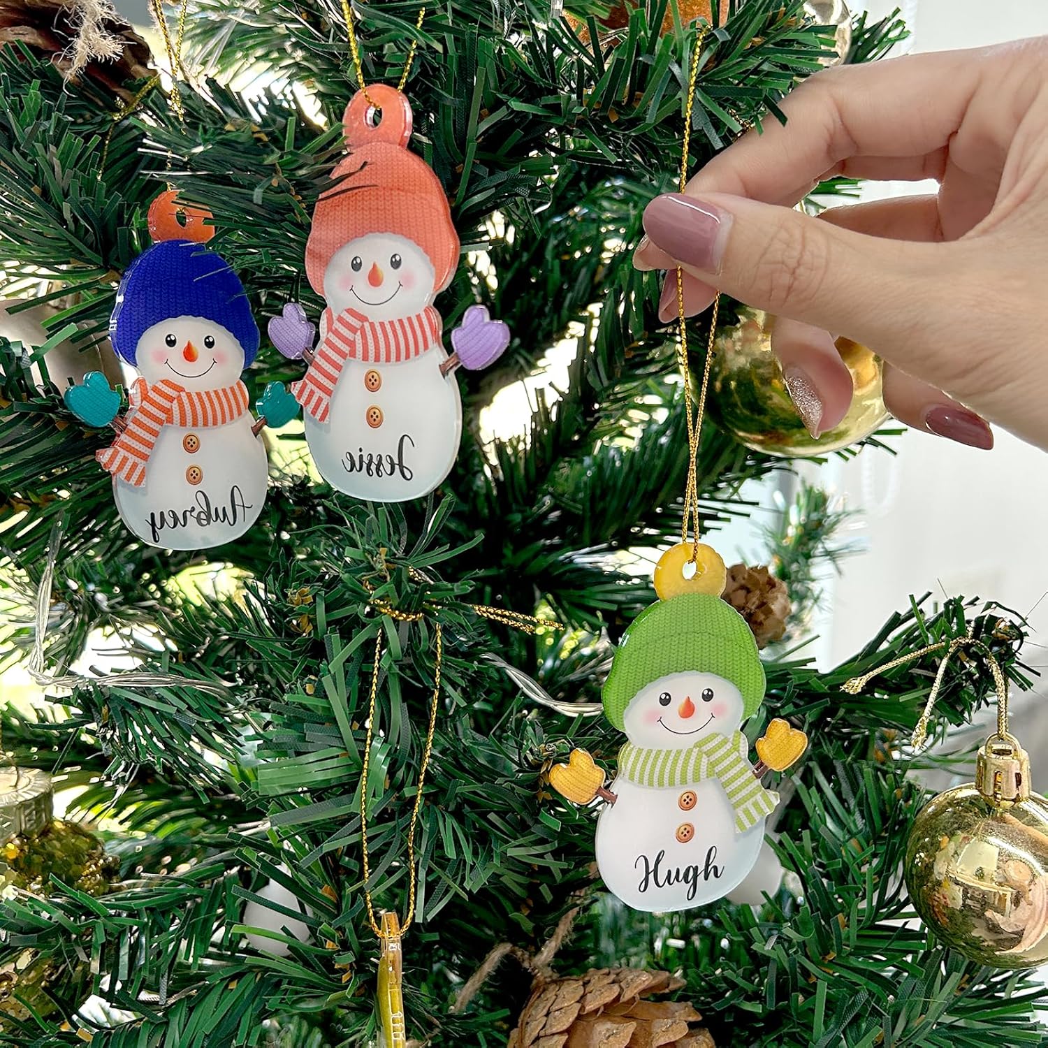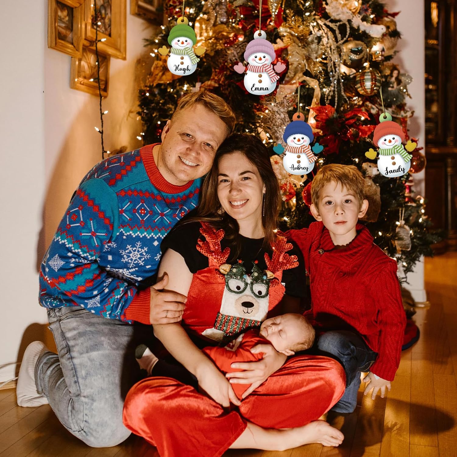 • Personalized Snowman Christmas Ornaments – Add a touch of festive warmth with custom snowman ornaments featuring your family name. Simply click “Customize Now” to create a unique decoration that celebrates Christmas with family and friends, making your tree truly special.