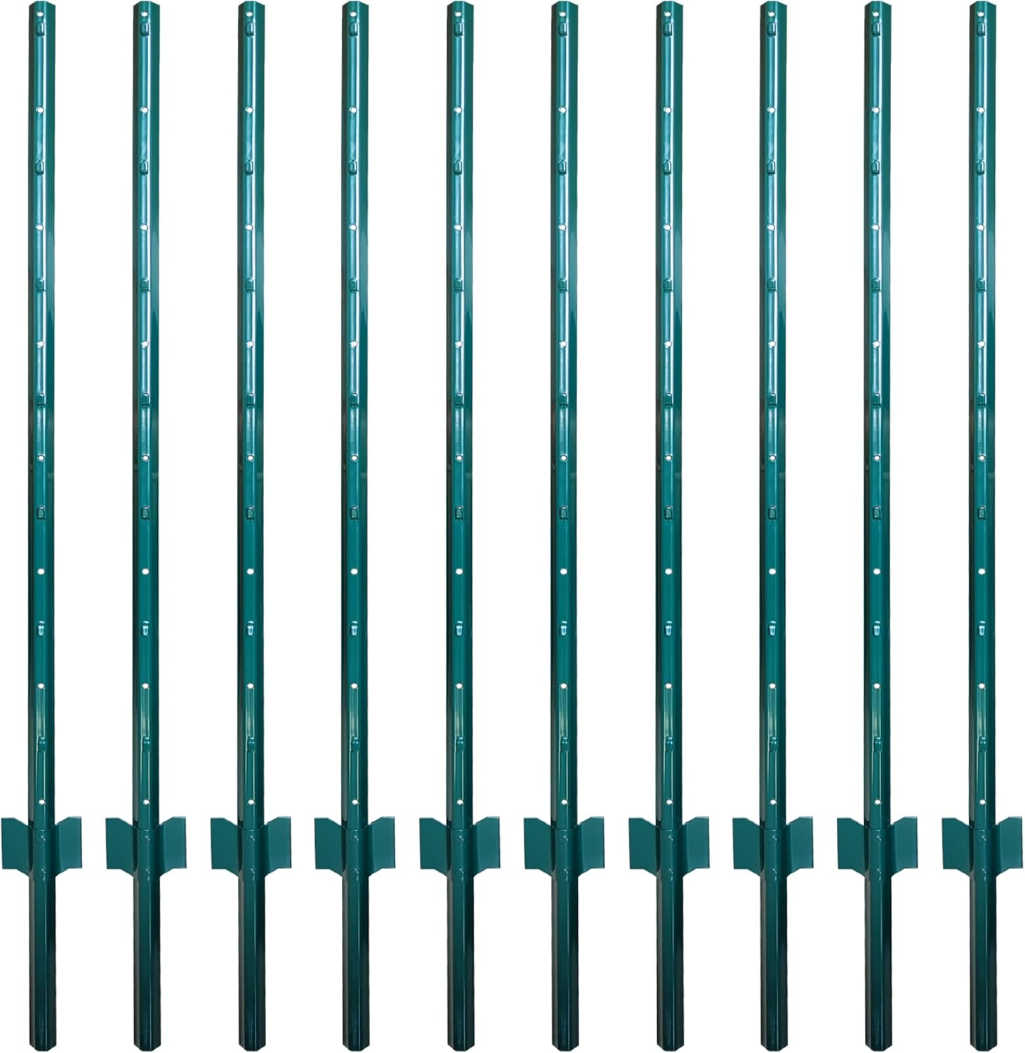 ARIFARO Fence Posts 4.8 Feet Sturdy Duty Metal Fencing Poles, Pack of 10, No Dig Garden U Post for Wire Fencing Steel Post for Yard, Outdoor Wire