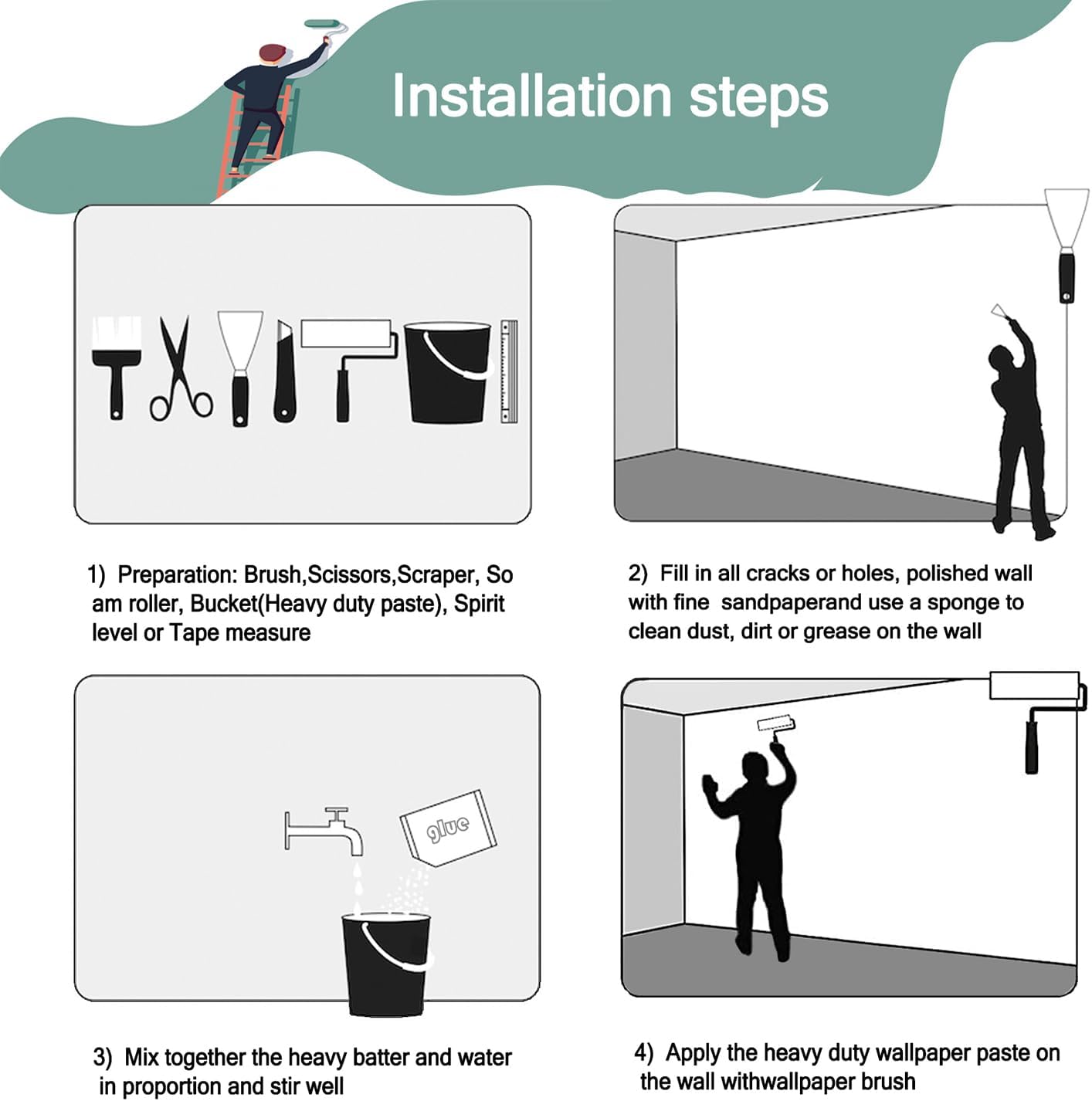 • Matters Need Attention:Our wall mural is not self-adhesive or peel and stick.You need to buy their own tools and heavy wallpaper adhesive, otherwise it can not be used