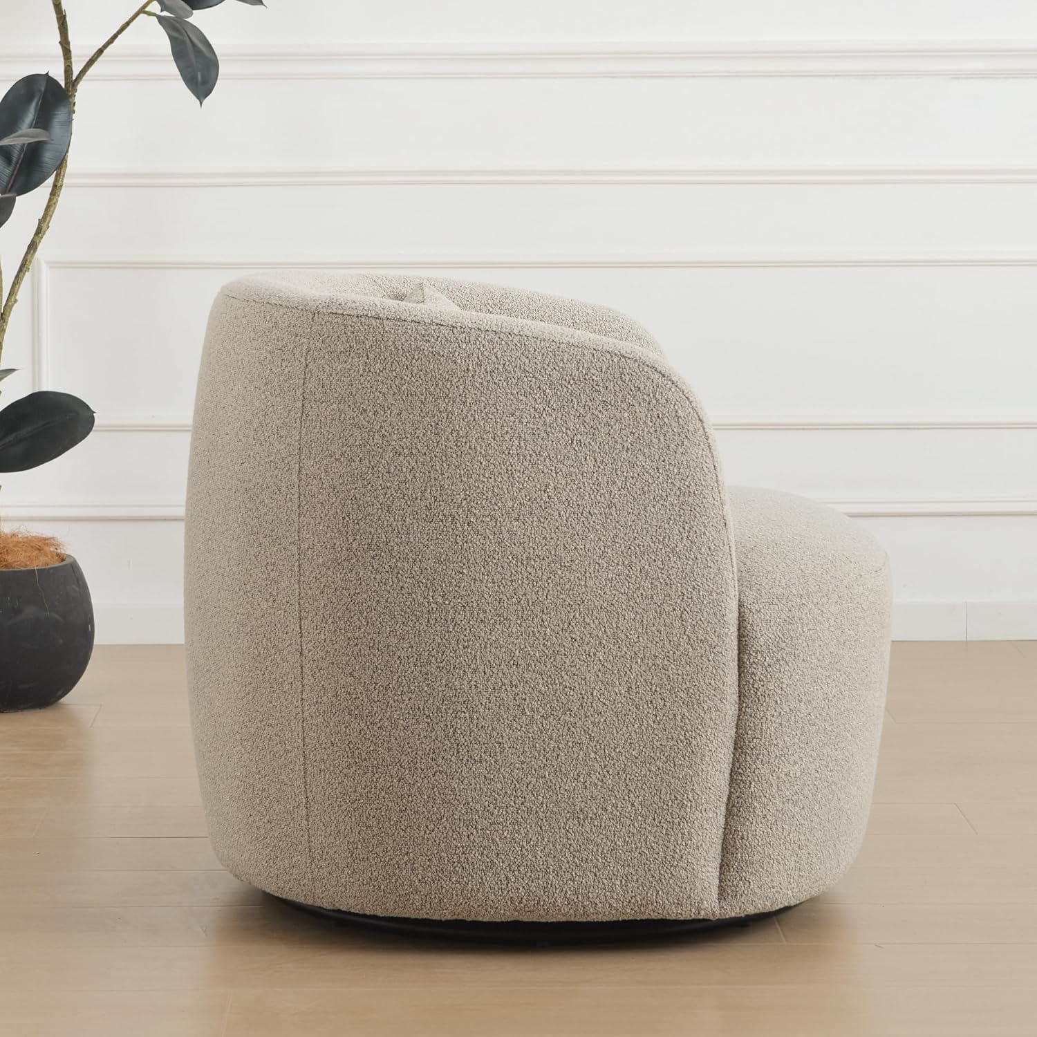 • Ready to Use with Easy Maintenance: Arriving fully assembled, this swivel boucle barrel chair is ready to use right out of the box. To keep it looking its best, simply use a damp cloth for small spills and avoid direct sunlight to maintain the fabric's color and texture. This swivel barrel chair is designed for comfort, style, and practicality, making it a must-have for any home.