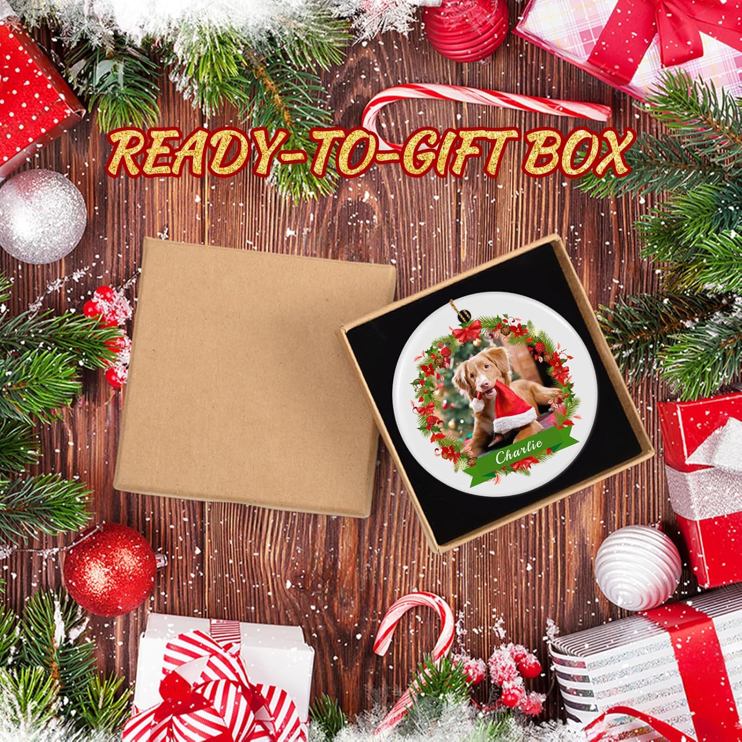 Personalized Dog Photo Christmas Ornament 2025, Ceramic Custom Pet Memorial Ornament Xmas Gifts for Christmas Trees Decorations