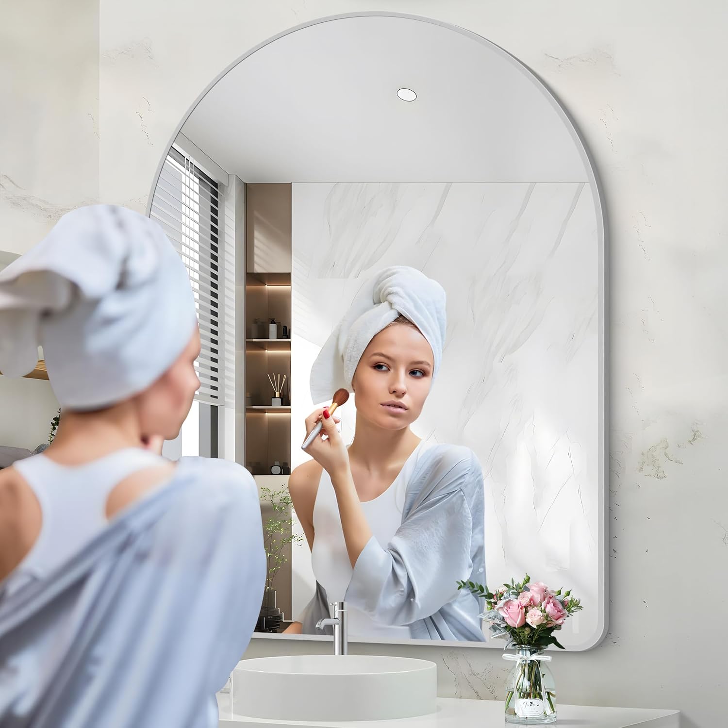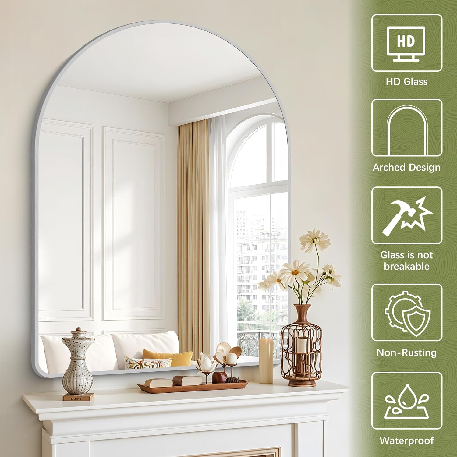 • Arched Bathroom Mirror Design: The Arched-top wall mirror makes your bathroom more elegant and classy, which especially attracts your eyes.bathroom mirrors for over sink,living room wall decor, silver arched mirror Ideal for wall mirrors decorative, silver mirror for bathroom make the space more brighter and spacious.