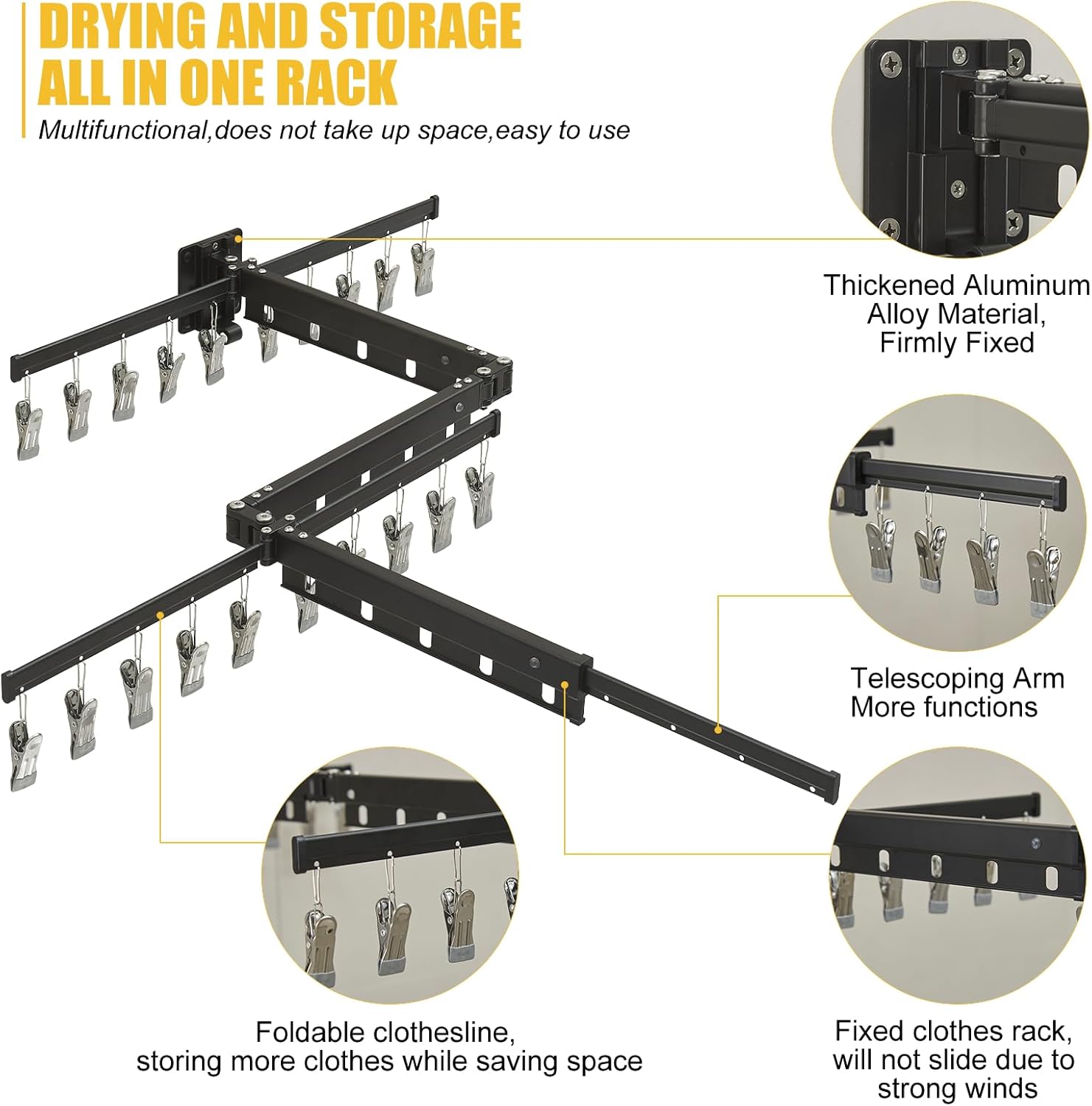 • STURDY AND DURABLE: This drying rack clothes has holes for easy installation; the drying rack is sturdy and durable and can withstand greater weight; the wall-mounted drying rack can hang a large number of clothes at a time.