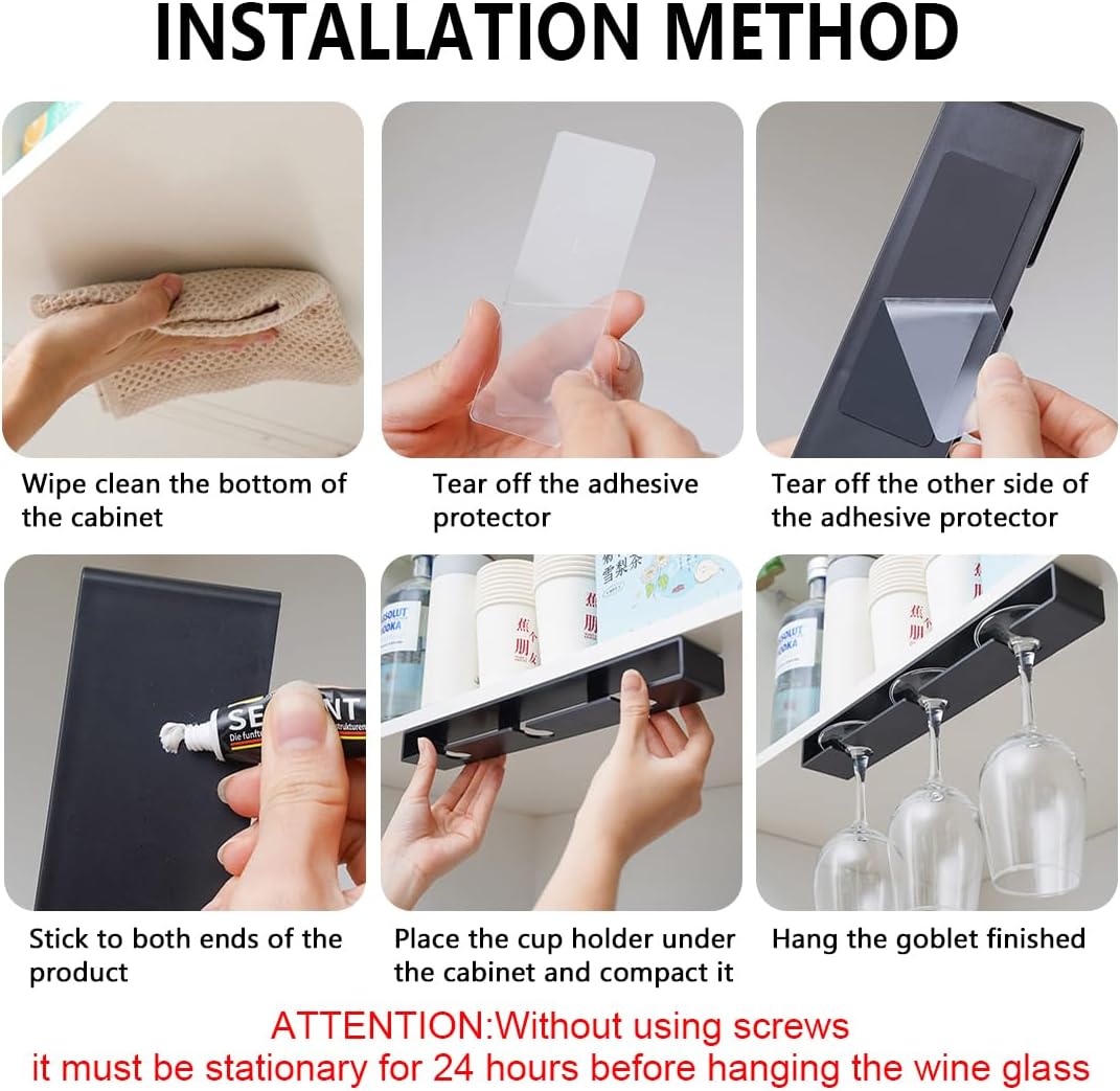 • Easy to Install: The wine glass rack is equipped with self-adhesive adhesive, Punch-free,easy to install,Due to the different materials of cabinets, Suitable for different installation environments:bar glass holder,wine cabinet,kitchen cabinet,under shelf in receiption room etc.