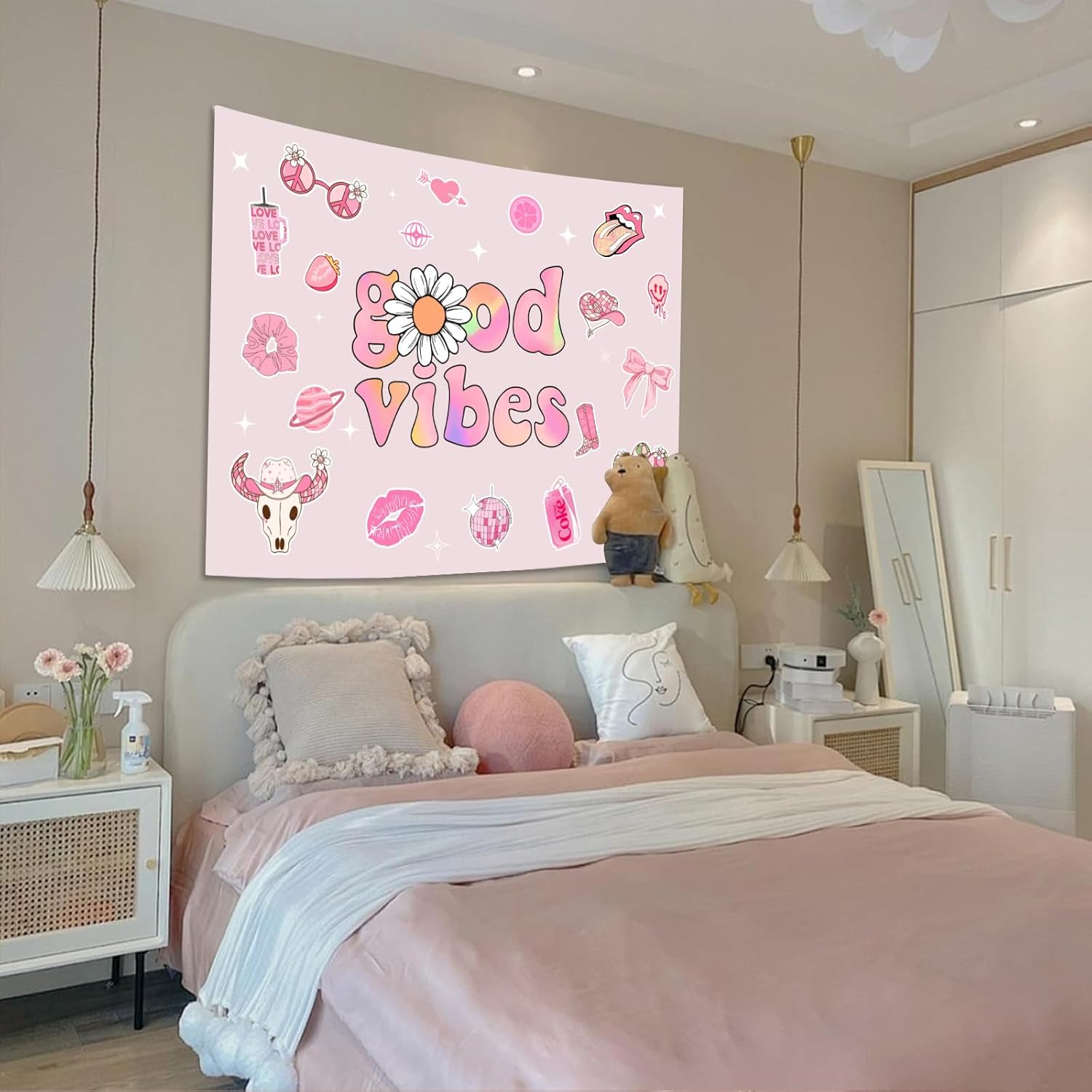 Lunerfex Y2K Tapestry Pink Wall Tapestry, Cute Tapestries for Bedroom Funny Tapestries Wall Hanging for Bedroom Living Room Decor Pink-1 44"x60"