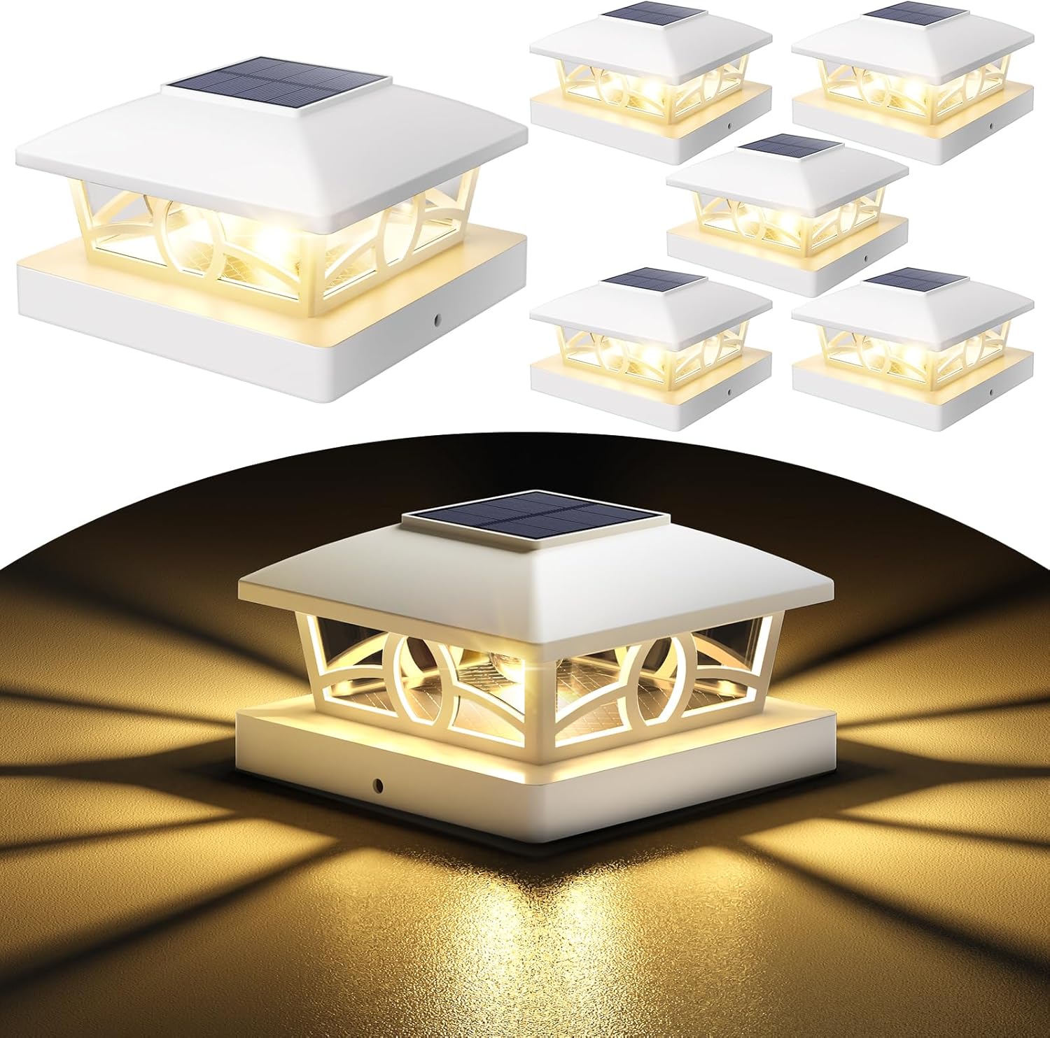 NIORSUN Solar Post Lights Outdoor, Fence Post Solar Lights Warm White Outdoor Waterproof Edison LED Bulbs Garden Patio Fence Deck Decor, 4x4 5x5 Wood Vinyl Post Cap Lights, White 6 Pack