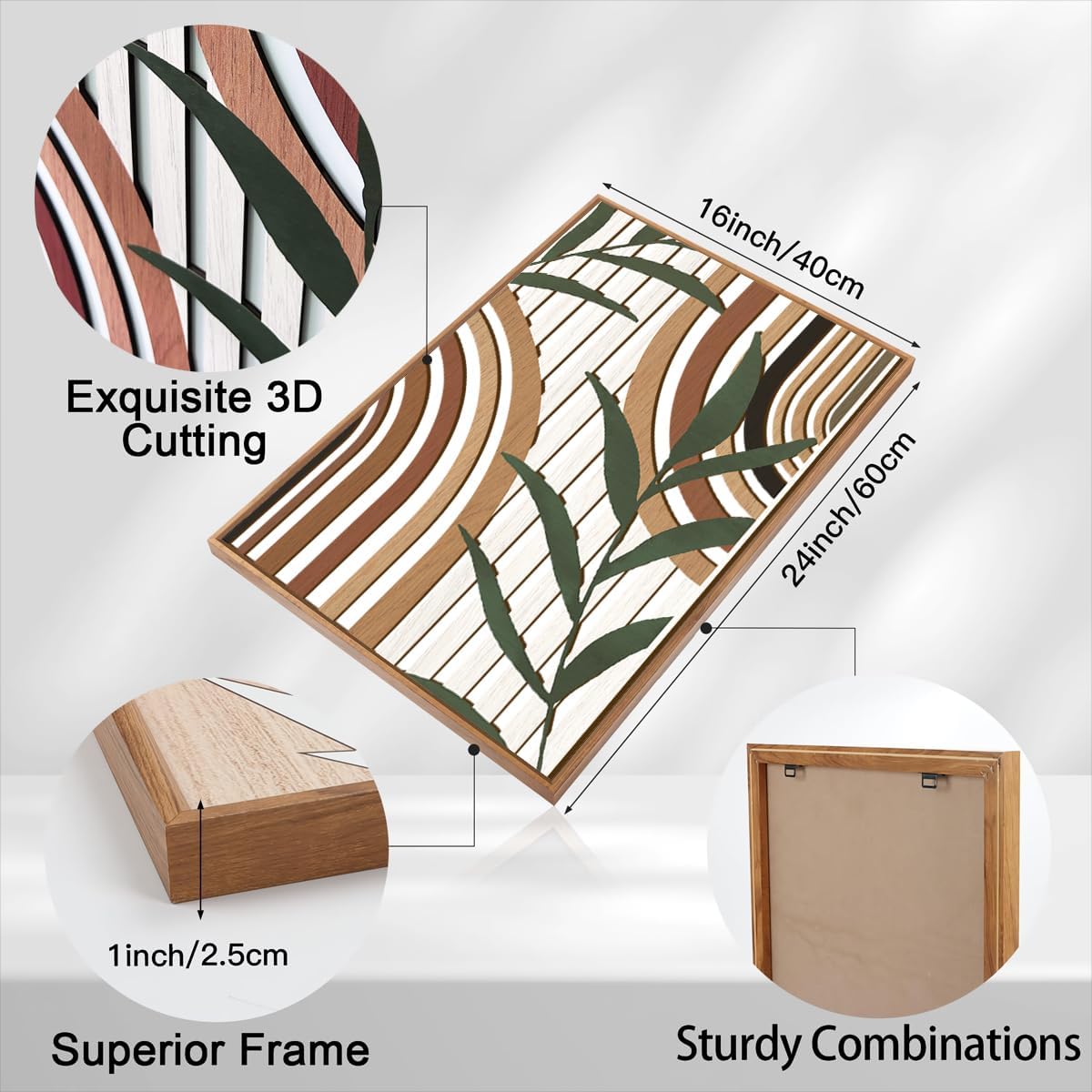 Large Boho Mid Century Wood Wall Art Set,Modern Geometric Leaves Artwork Bohemian Wall Sculptures,Abstract Minimalist Wooden Wall Decor for Living Room Bedroom Office-16 x24 x3