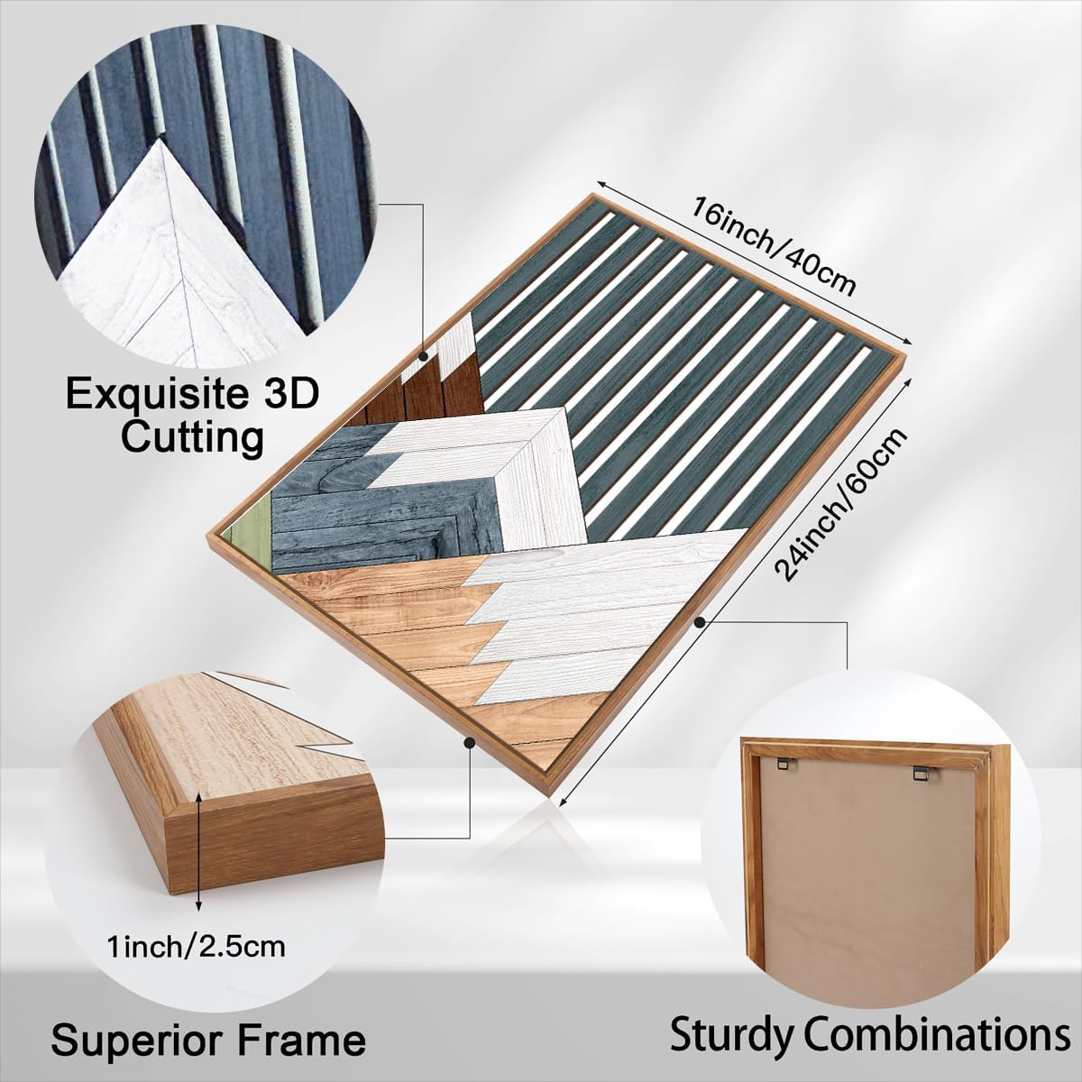 • 【Size for Easy Displaying】The Geometric Wooden wall art measures 16X24 inches(40X60cm) On the back of the high quality boho forest wall decor, two nails have been installed in advance, so you can easily hang or disassemble the abstract blue wall decor by using the nails and transparent silica gel mats provided in the package, very easy to operate.