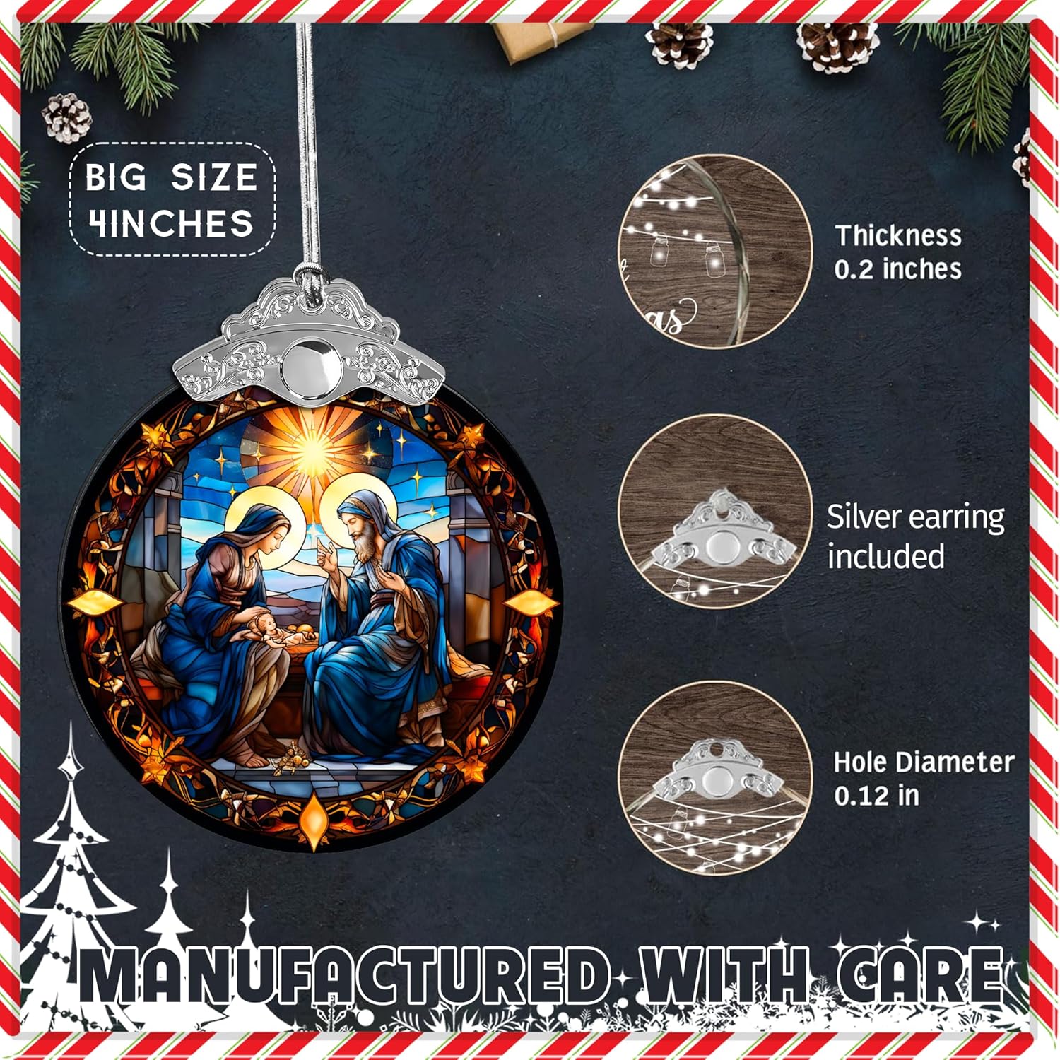 Nativity Ornaments, Stained Glass Effections, Nativity Scene 4 Inch Acrylic Ornament Art, White Elephant Gifts, Nativity Christmas Ornaments, Christmas Decor (Suncatcher Nativity)