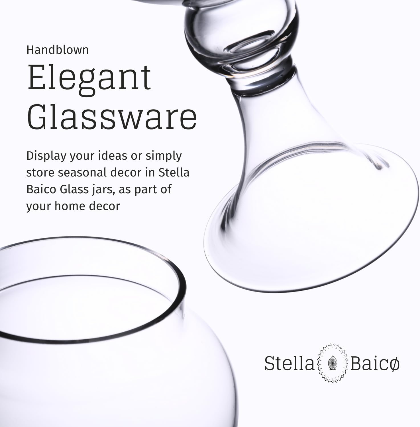 • HAND-BLOWN GLASS: Crafted from durable, high-quality hand-blown clear glass, this apothecary jar features a sleek, crystal-clear design that showcases its contents. Small air bubbles are a natural part of the hand-blown process, adding to its unique charm.
