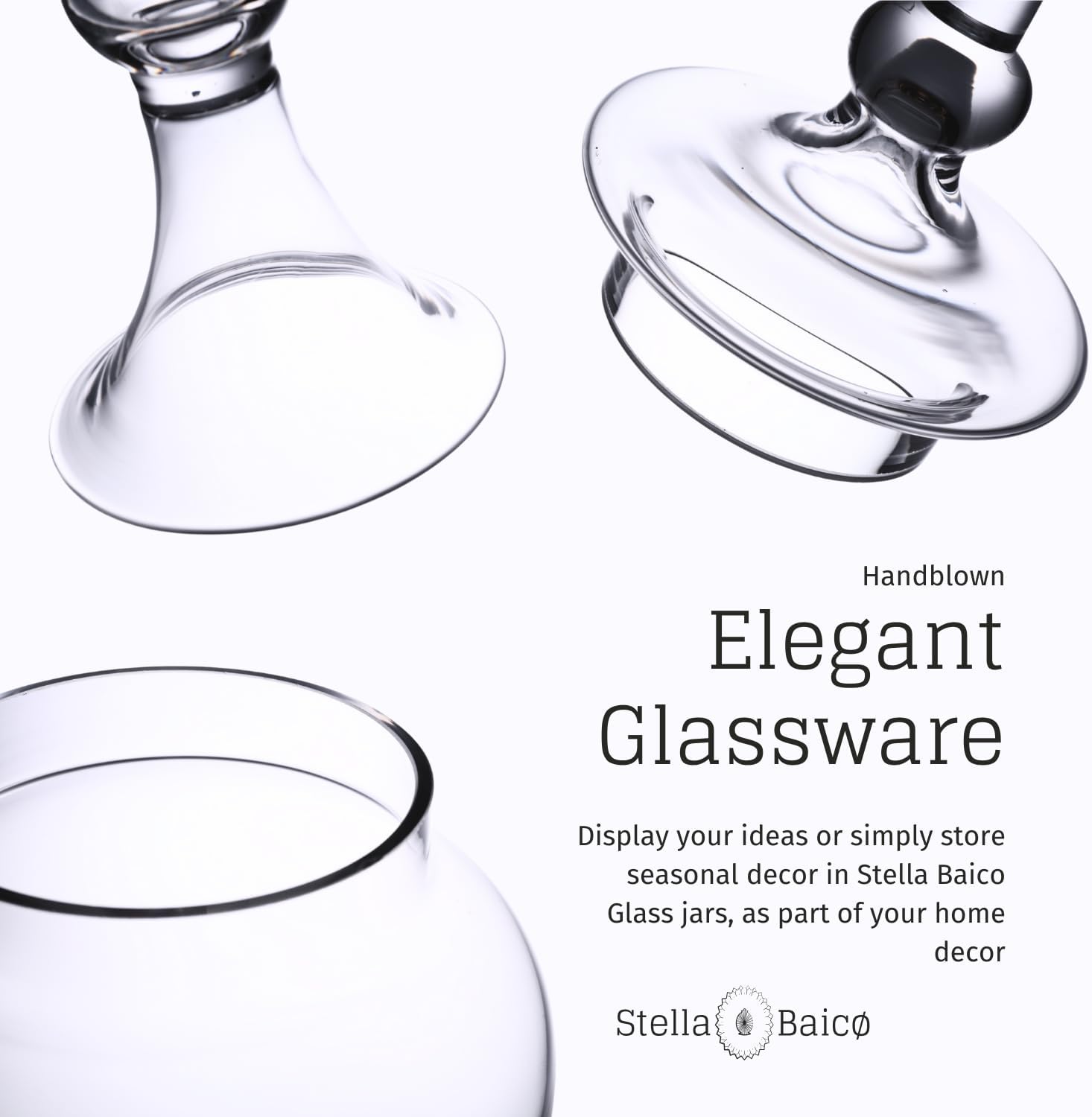 • HAND-BLOWN GLASS: Crafted from durable, high-quality hand-blown clear glass, this apothecary jar features a sleek, crystal-clear design that showcases its contents. Small air bubbles are a natural part of the hand-blown process, adding to its unique charm.