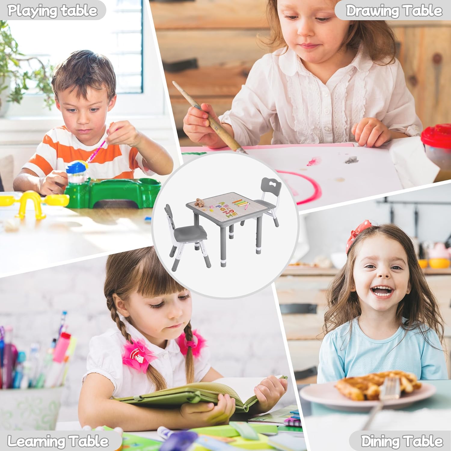 Toddler Table and Chair Set, Height Adjustable-Upgrade Kids Table and 2 Chairs for Ages 3-8, Multi-Activity Toddler Play Table with Graffiti Desktop for Home/Daycare/Classroom