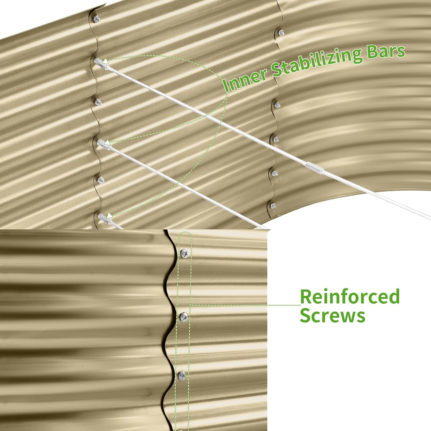 Land Guard 6x3x3ft Oval Galvanized Raised Garden Beds, Large-Capacity Metal Planter Box Outdoor, Durable Deep Raised Garden Bed 3ft Tall, Raised Beds for Gardening Vegetables, Cream Yellow