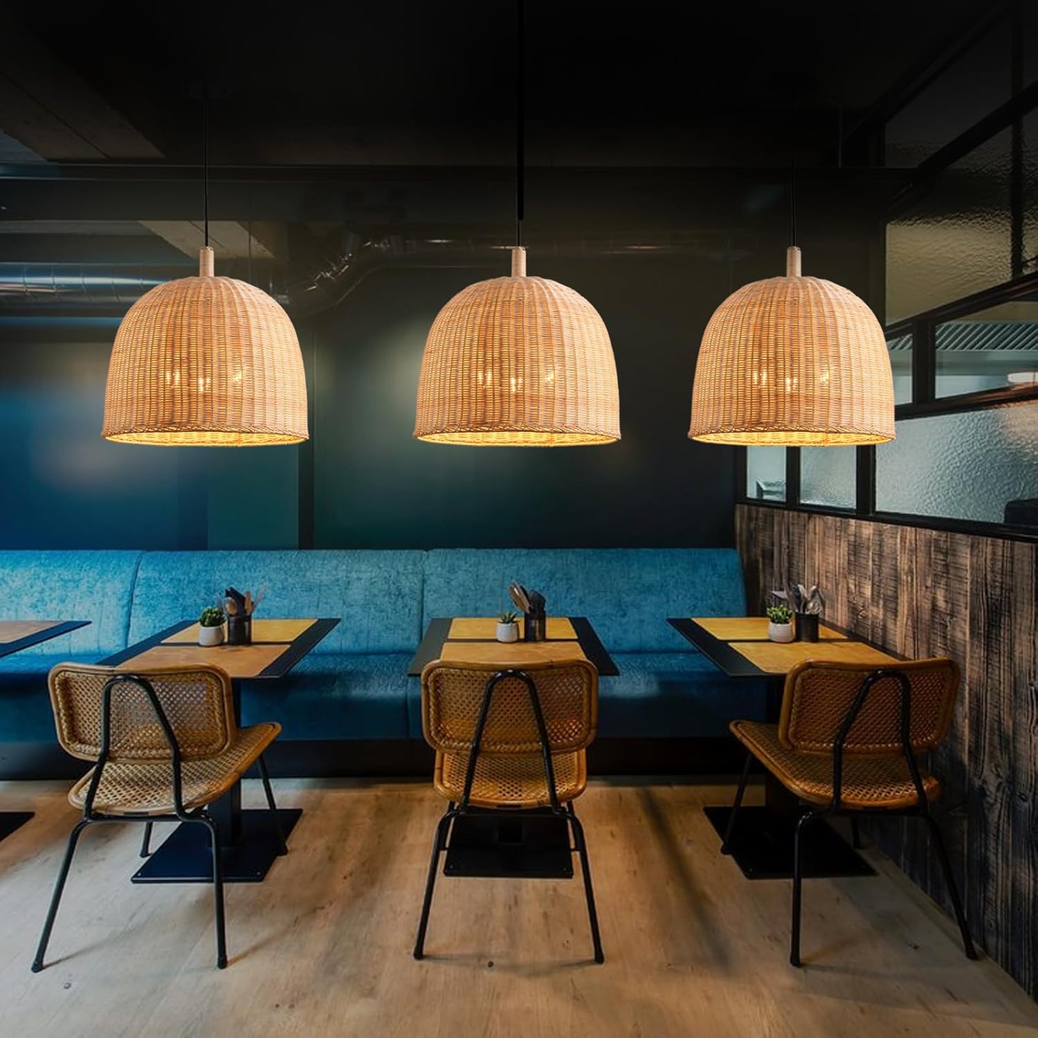 • 【 Light Size Bulb Requirement】3-Light rattan pendant light, Size D 45 *H 42 cm, D 17.72 * H 16.5". Voltage 110v-240v, Bulb socket and electric cord have passed the UL listed, which can ensure that you use them safely. US standard E26 base socket, maximum 60W, suitable for Incandescent, LED, halogen, CFL, etc.(Bulb Not included)