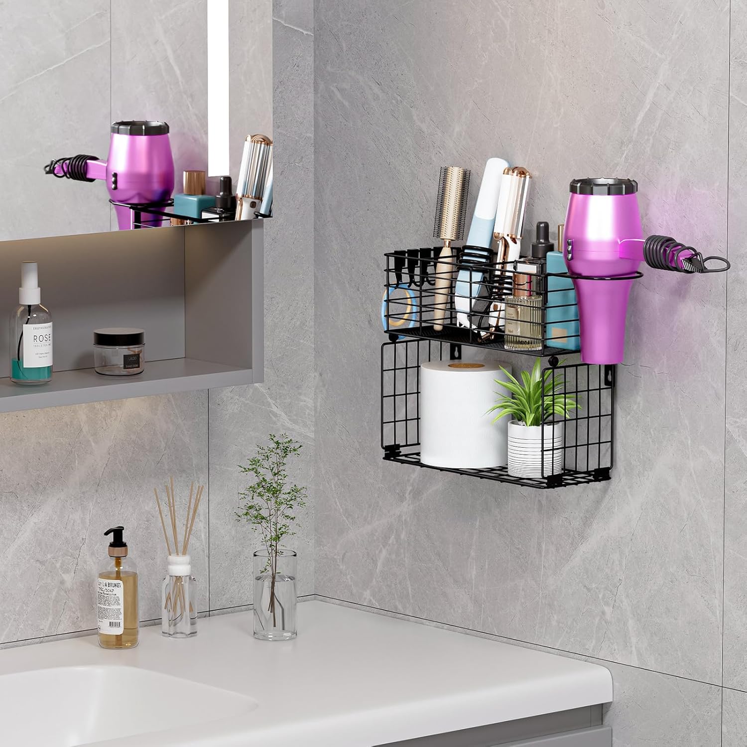 • 【Detachable and Versatile Design】This 2-tier blow dryer holder can be separated and used independently, making it flexible for different scenarios. Place them on bathroom countertops or above the toilet to maximize space utilization.