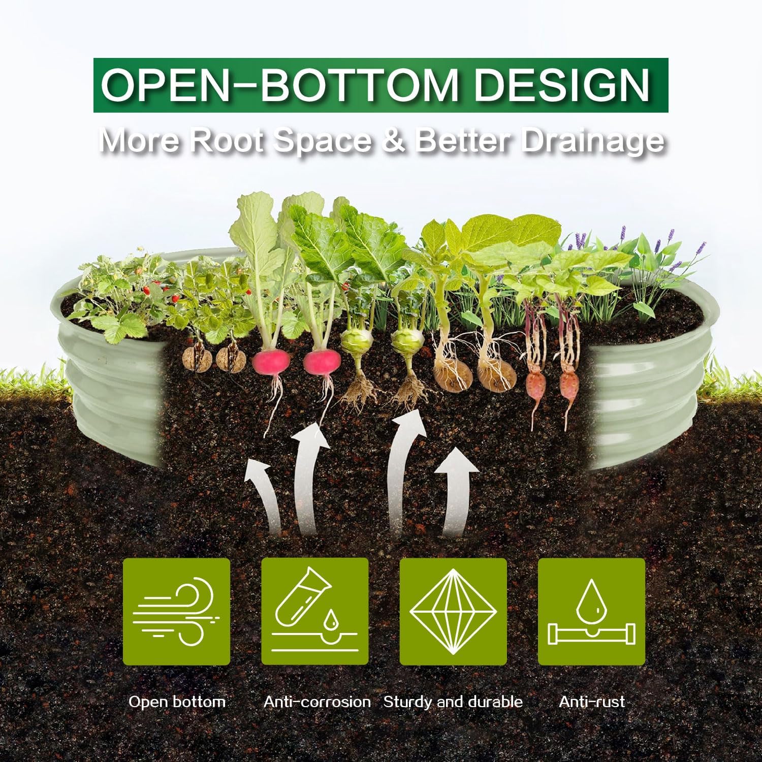 • EASY TO ASSEMBLE: Set up your garden bed, in just minutes and easy to put it together, it can be reused for many years. GARDMAX raised garden beds feature an oval design with no sharp corners to cover the edges. And the top edge of the metal raised garden bed comes with a black rubber sealing edge for reinforcement as well as to prevent injury, and it can be cutted to the length you required. Get started on your garden right away and enjoy fresh, healthy produce in no time