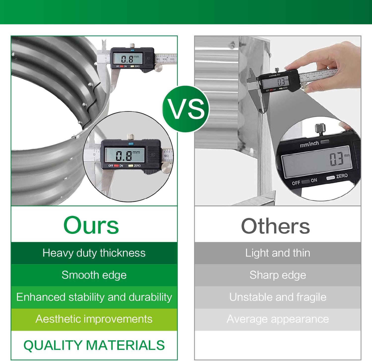 • DURABLE GALVANIZED MATERIAL: Gardmax outdoor raised garden beds are made from 0.8mm heavy-duty galvanized material, ensuring exceptional longevity and durability. It is more resistant to high temperatures and freezes, making it very suitable for outdoor use. And this metal will survive the elements for decades, but when you're ready to replace it, the metal is entirely recyclable