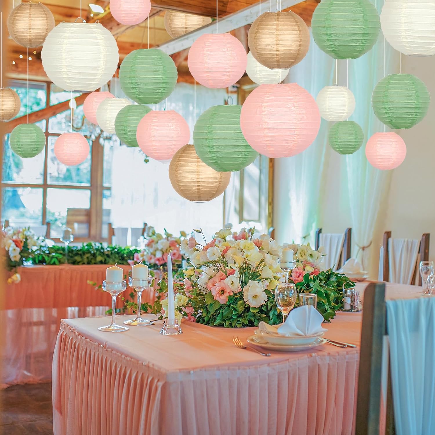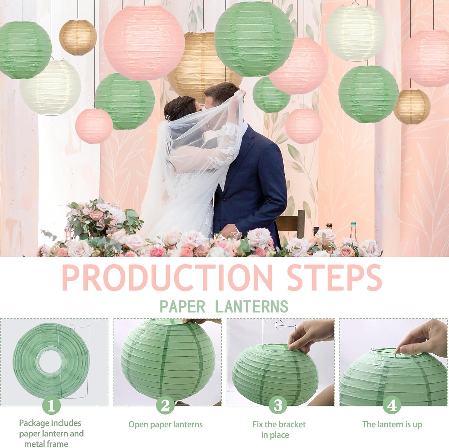 • SAGE GREEN BROWN PINK THEME PARTY DECOR - Paper lanterns are suitable for children's DIY activities, also suitable for events such as wedding party decoration, baby showers, birthday party, graduation, bridal shower, easter, engagement, Christmas, new years, outdoor BBQ, classroom, and office party , celebrations, market decoration summer garden party and other theme parties. For night use, you can put a light in the lantern. But LED lights NOT included