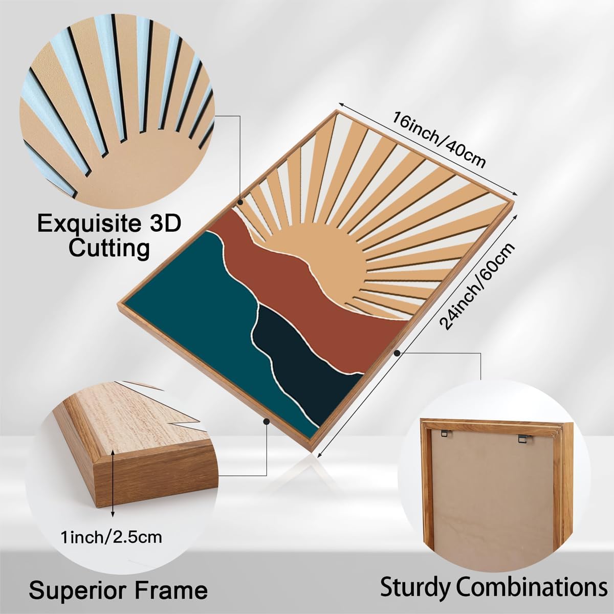 • 【Boho Mountain Framed Wall Art】This abstract mountain painting is inspired by the natural landscape, and the elements of the sun and moon are integrated into the picture, and the variety of colors make the picture more layered. Combined with modern art style, it presents simple and elegant design.