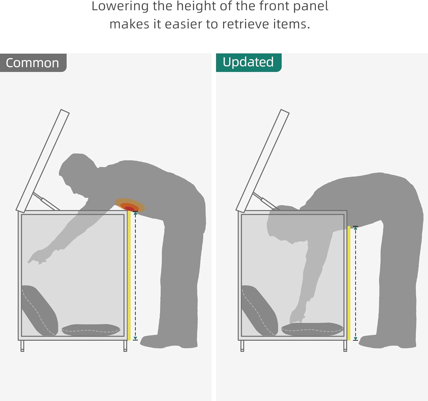 • Swift Assembly & Smooth Operation: Set up in under 20 minutes with effortless assembly. Enjoy a fully functional storage box with smooth pneumatic hinges for easy lid operation.