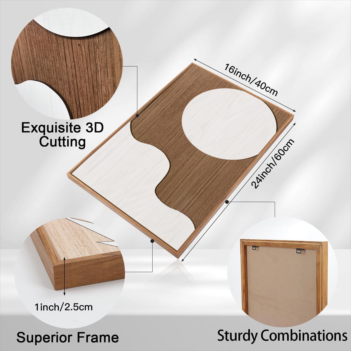 • 【Size for Easy Displaying】The Modern Geometric wall art measures 16X24 inches(40X60cm) On the back of the high quality neutral wall decor, two nails have been installed in advance, so you can easily hang or disassemble the geometric wood grain wall decor by using the nails and transparent silica gel mats provided in the package, very easy to operate.