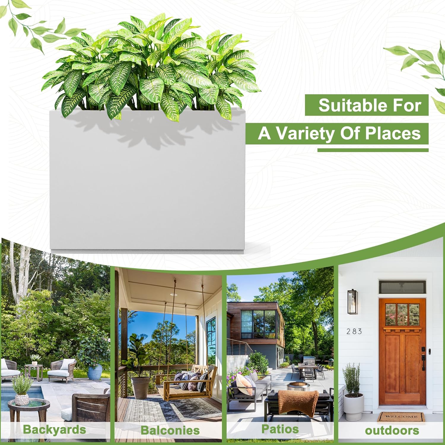 • 【Stylish and Modern】Elevate your outdoor space with these stylish and modern planters. Their sleek and contemporary design not only adds a touch of elegance but also complements various decor styles, creating a welcoming atmosphere that enhances the beauty of your surroundings.