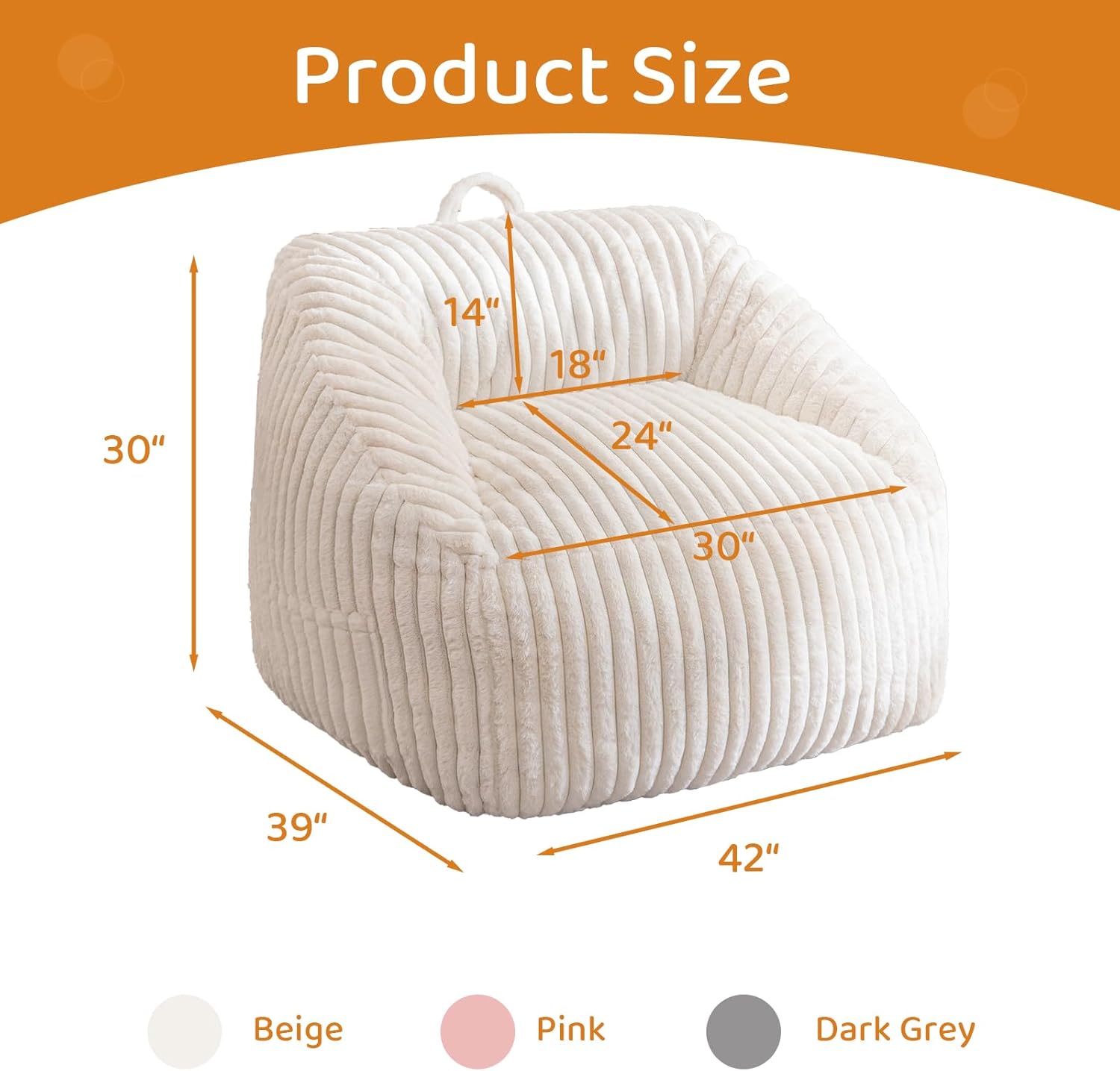 • No Assembly Required: This soft fur chair comes pre-filled with padding, no need to fill it yourself. Ships vacuum compressed and will expand when opened. Simply cut open the package, tap and shake to encourage spring back, and wait approximately 48 hours for it to return to its original shape. Then it's time for you and your family to enjoy happy hour!