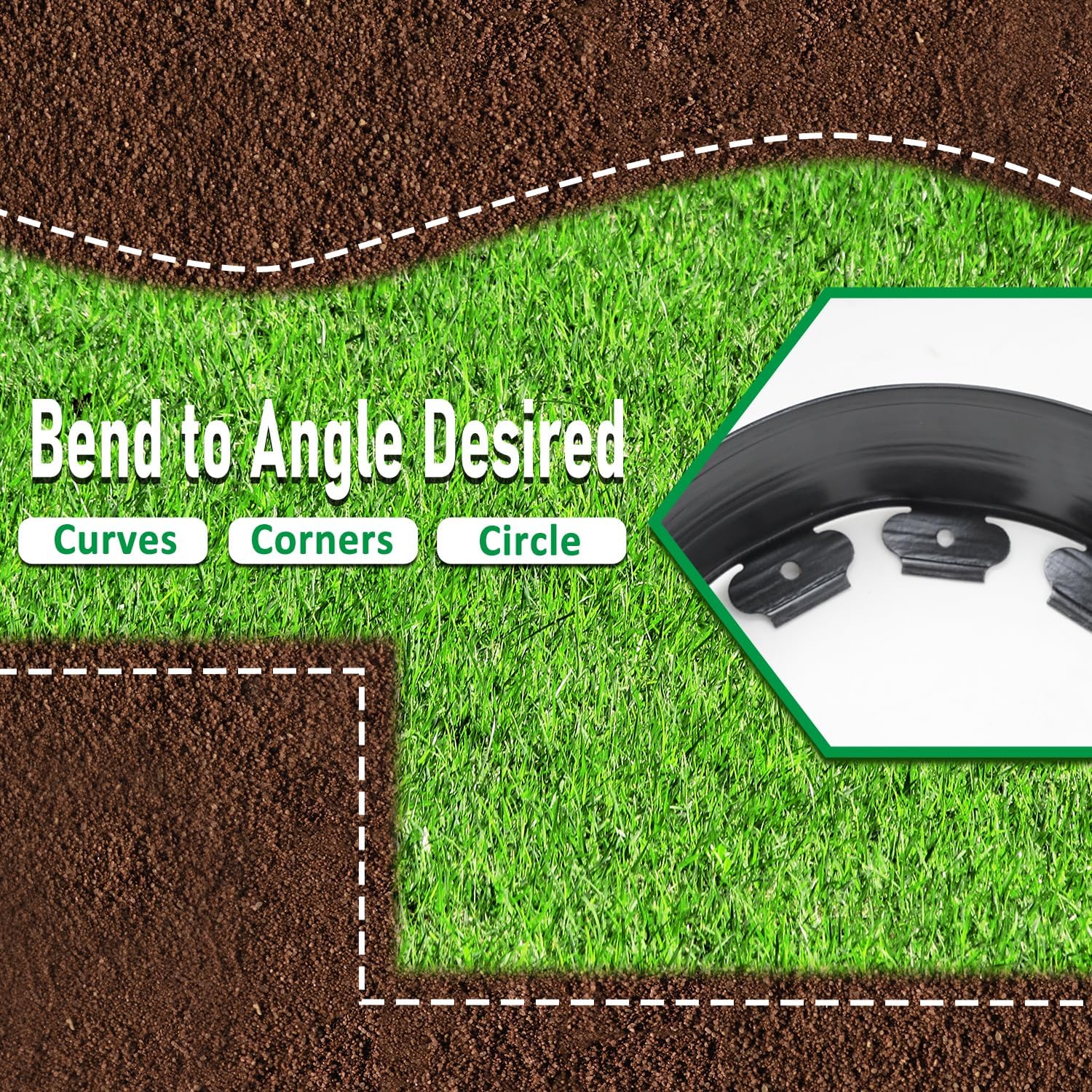 • Multiple Shapes: Garden edging offers the flexibility to design curves and rounded corners in your landscape, ensuring it won’t crack under pressure or harsh weather conditions and is reusable throughout the year