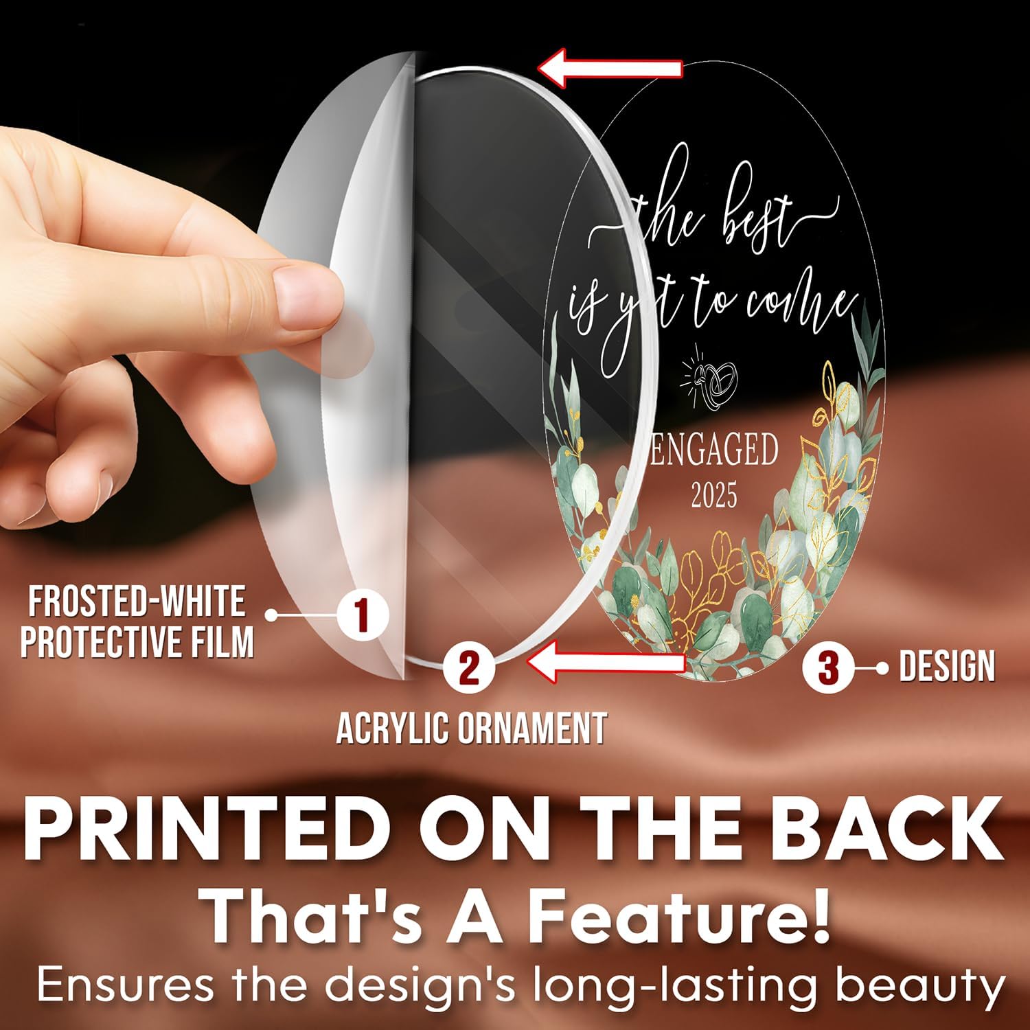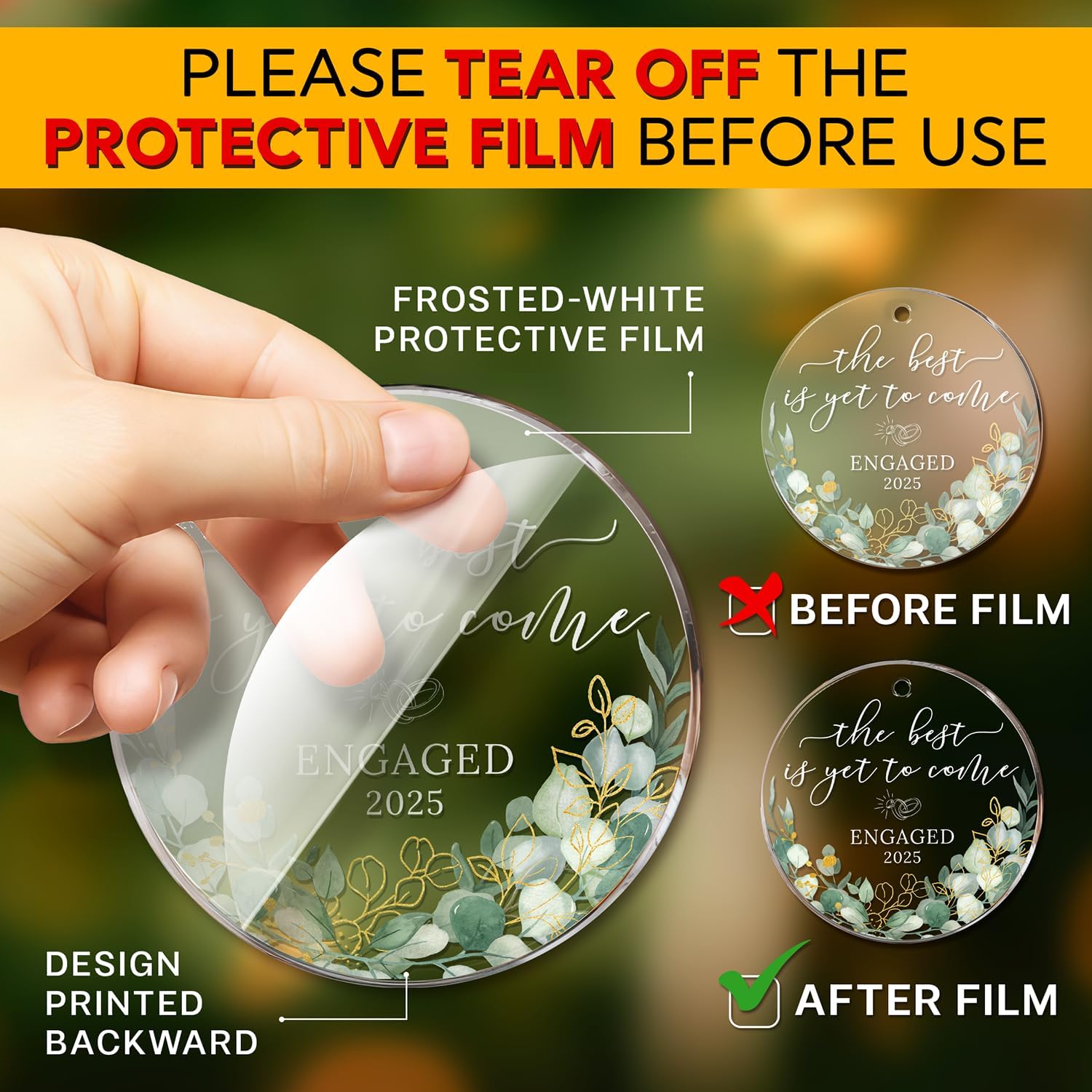 • ACRYLIC MATERIAL: This acrylic ornament has a slightly frosted-white protective film on the front to prevent scratches during shipping. The design is printed on the back side for durability. To fully appreciate the ornament's beauty, please tear off the film to reveal the smooth, glossy finish