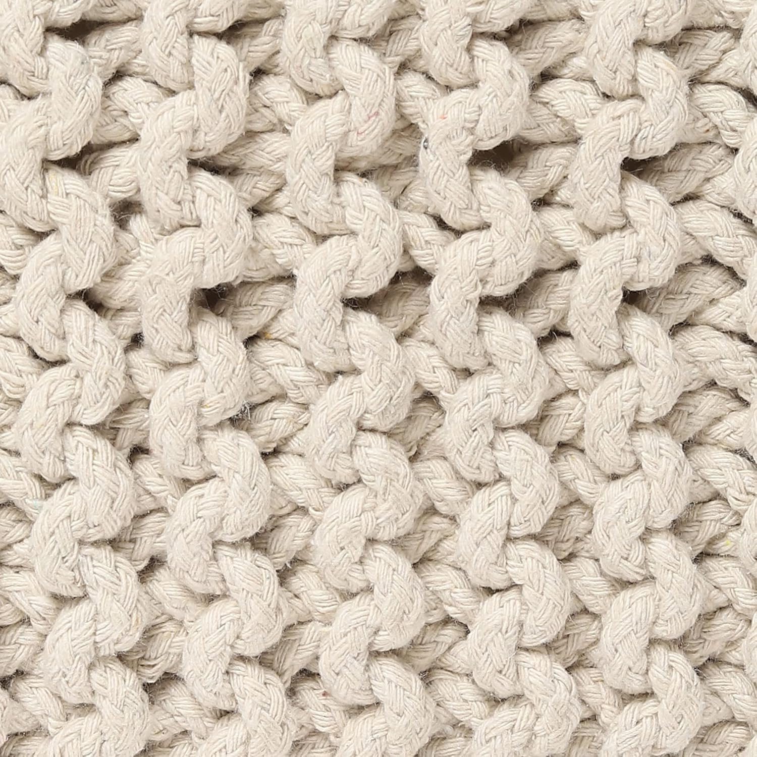 • HANDMADE FROM THE FINEST MATERIALS: The outer material on this eye-catching pouf ottoman is made from 100% cotton chord knitted in a unique pattern and filled with thermocol block inserts. Each floor pouf measures 16x16x8 inches and is handmade by our talented in-house artisans. This floor pouf is perfect when you need to rest your leg