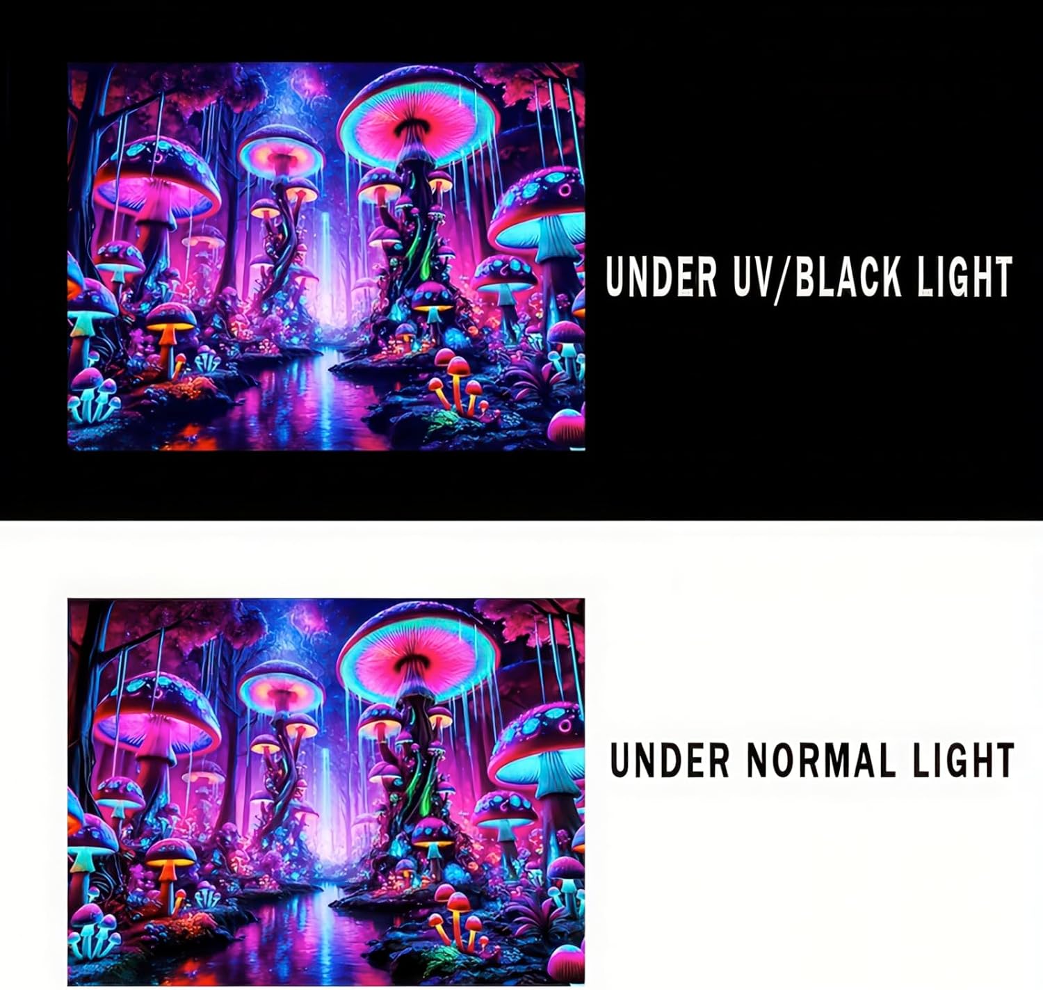 • Blacklight and UV Reactive: Featuring advanced with special materials polyester, this blacklight poster emits brilliant light under blacklight or UV radiation. It creates a unique visual experience that transforms your space into an otherworldly ambiance.