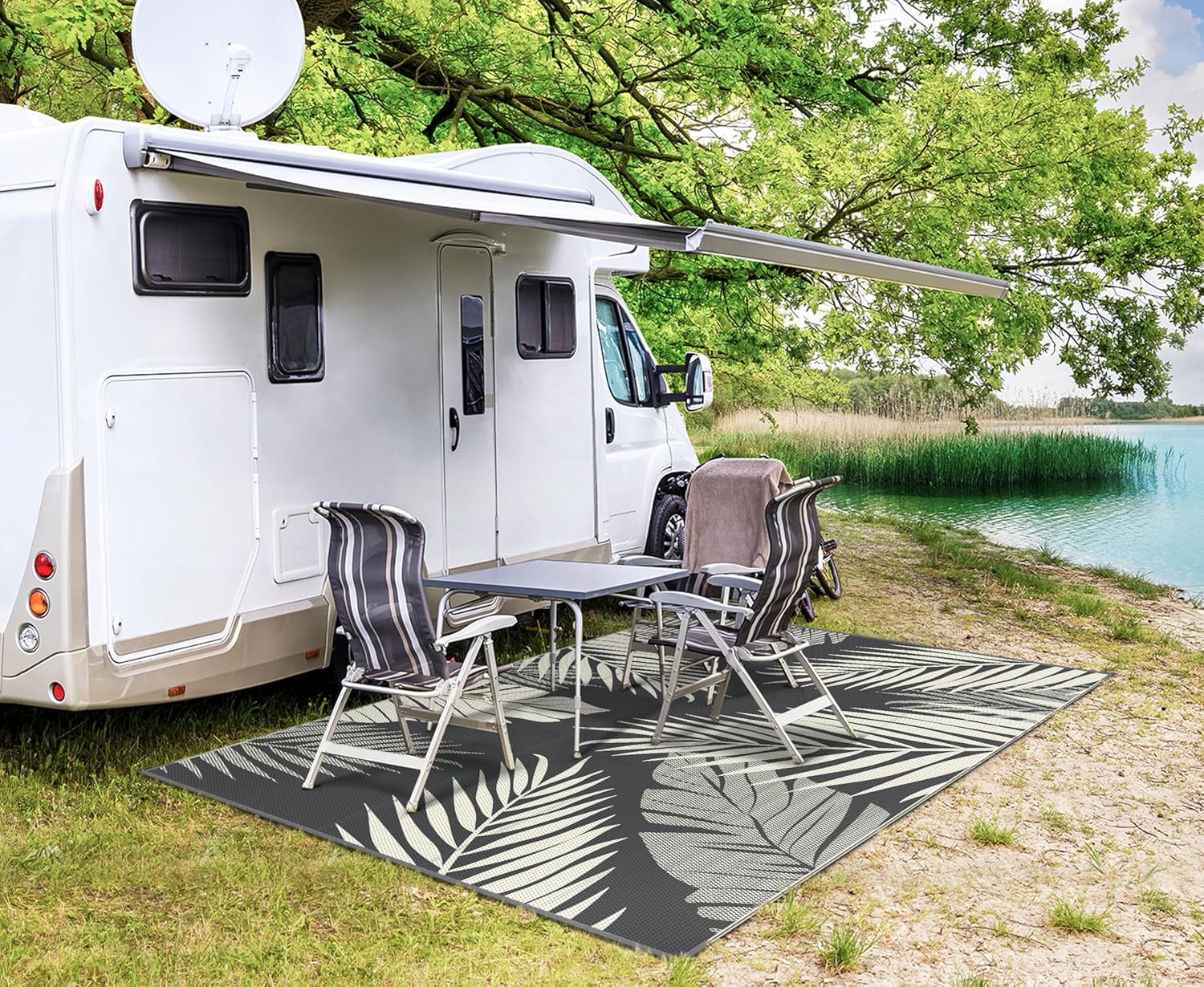 • Perfect Choice For RV Camping: Woven from lightweight plastic straws, these RV outdoor rugs fold compactly to fit in the included carry bag. This portable waterproof outdoor rug is easy to carry, with 4 corner loops and stakes to secure it. Using this camper rug reduces travel fatigue and adds plenty of space for fun — also a stylish touch for fall decor when setting up your campsite