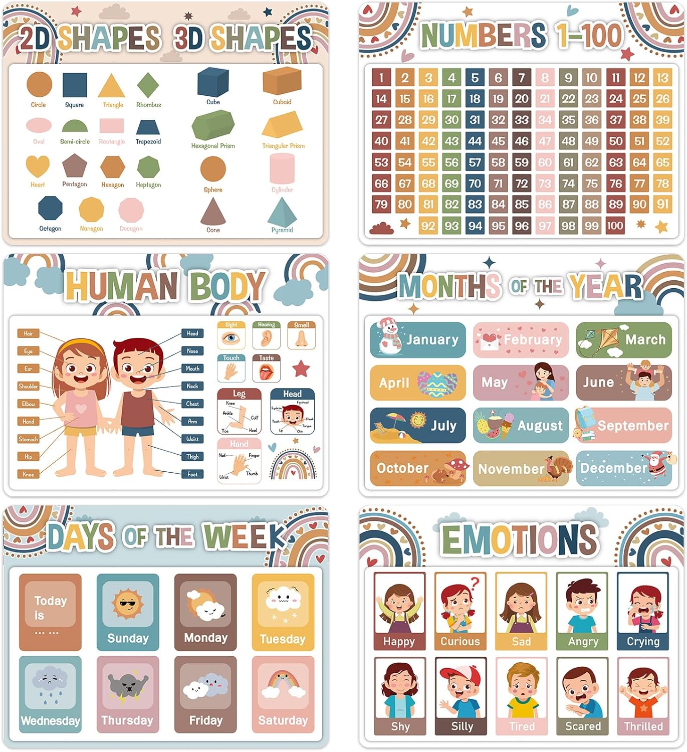 • Educational for kids placemats: You will get 6 preschool education learning placemats, featuring 6 different designs including themes on shapes, the human body, months of the year, numbers, days of the week, and emotions. These engaging and colorful placemats are great for introducing early education to preschoolers and elementary school children. Ideal for homeschooling, preschool, and kindergarten classrooms.