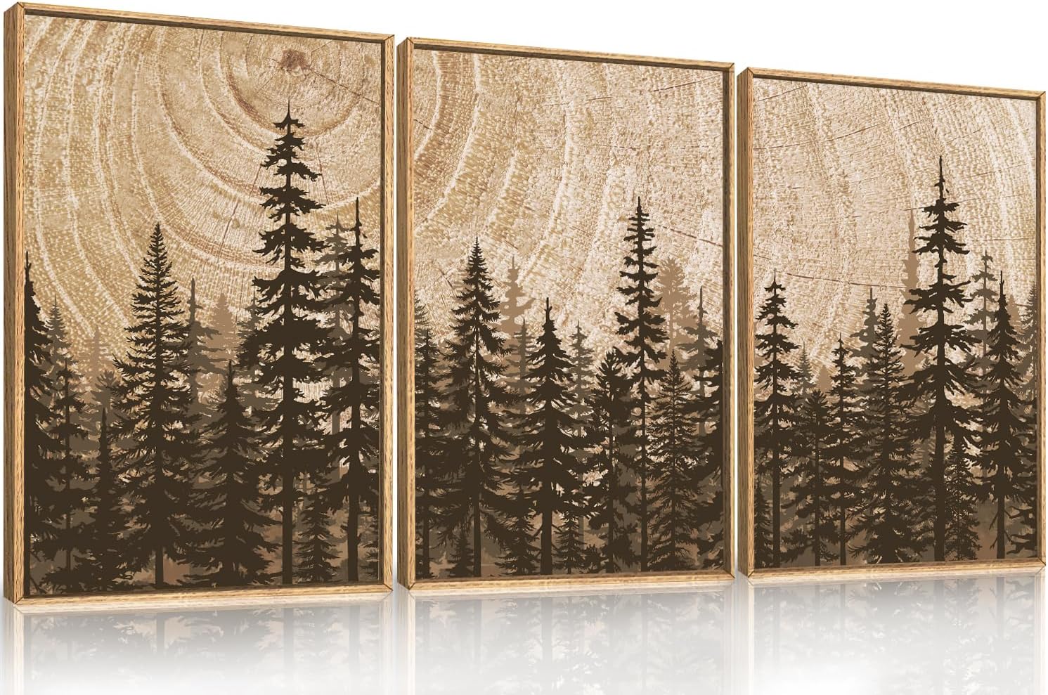 Celestdeco Pine Tree Framed Canvas Wall Art Set, Natural Woodland Landscape Wall Decor, Large Retro Forest Painting, Vintage Brown Artwork for Living Room, Bedroom, Kitchen, Study, Office - 24"x36"x3