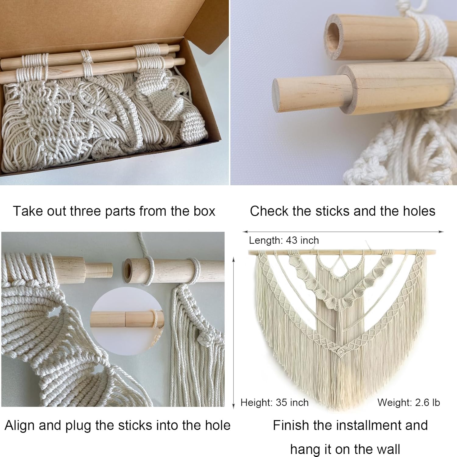 • Easy to Install: The package comes with 3 separate parts of short macrame wall hangings which could be easily connected together with the screws inserted in the wood rod.