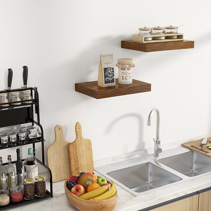 • STYLISH & PRACTICAL: These 10-inch deep floating shelves offer a simple rustic charm and are made from permium engineered wood. With their smooth, natural finish, they add warmth and personality to any room, fitting seamlessly into both modern and classic interiors