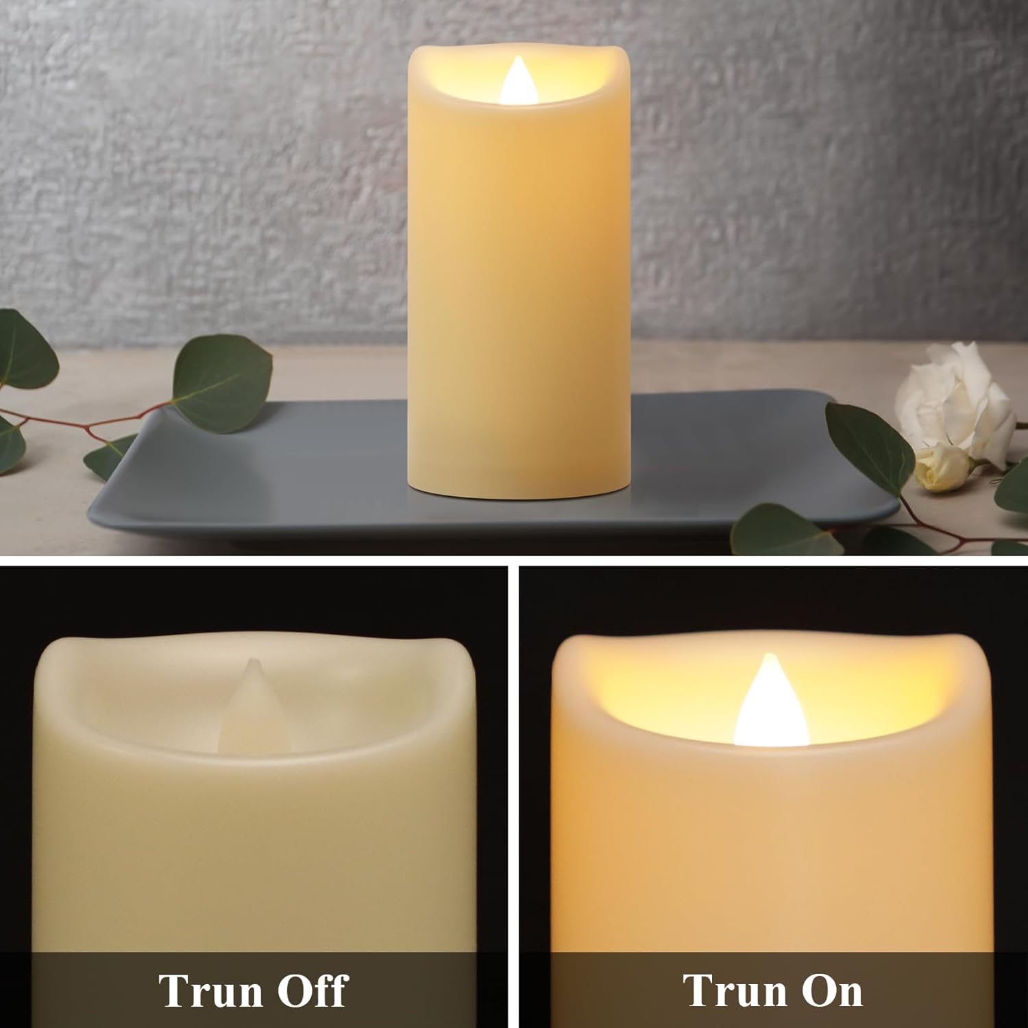 • Convenient Remote Control with Timers: When these battery operated flameless candles are placed where hard to reach, you can control them by remote within 50 feet. Set 2/4/6/8H timer easily then it will turn on automatically at the same time every day. Also you can adjust the light mode (flicker/steady glow) and brightness level as you need. The remote is required 2 AAA batteries(not included)
