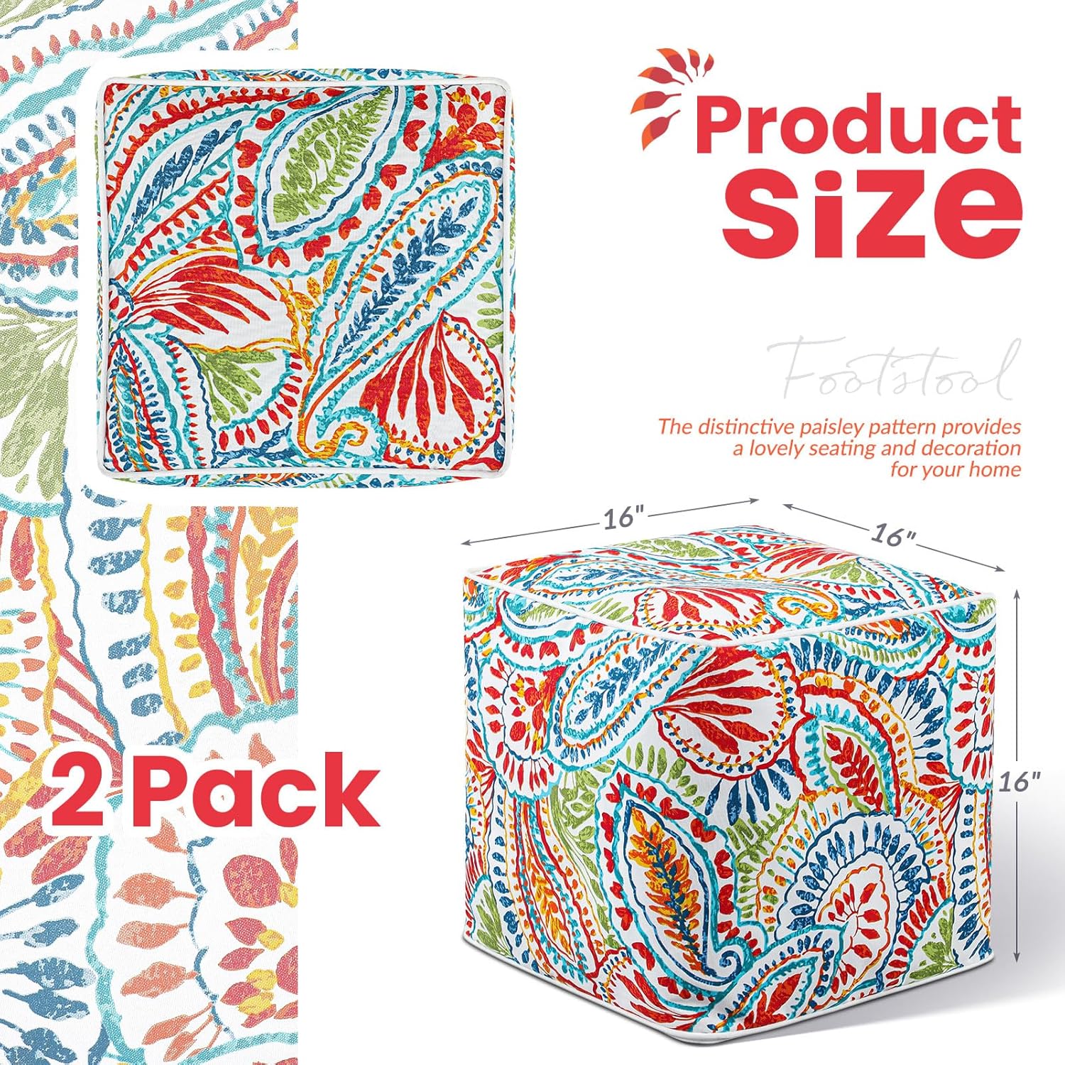 Juexica 2 Pack Ottoman Poufs Indoor Outdoor Inflatable Ottoman Stool Cube Pouffe Square Footstool with Handle for Patio Garden Home Boho Decorative Living Room, Bedroom(16 x 16 x 16 Inches)