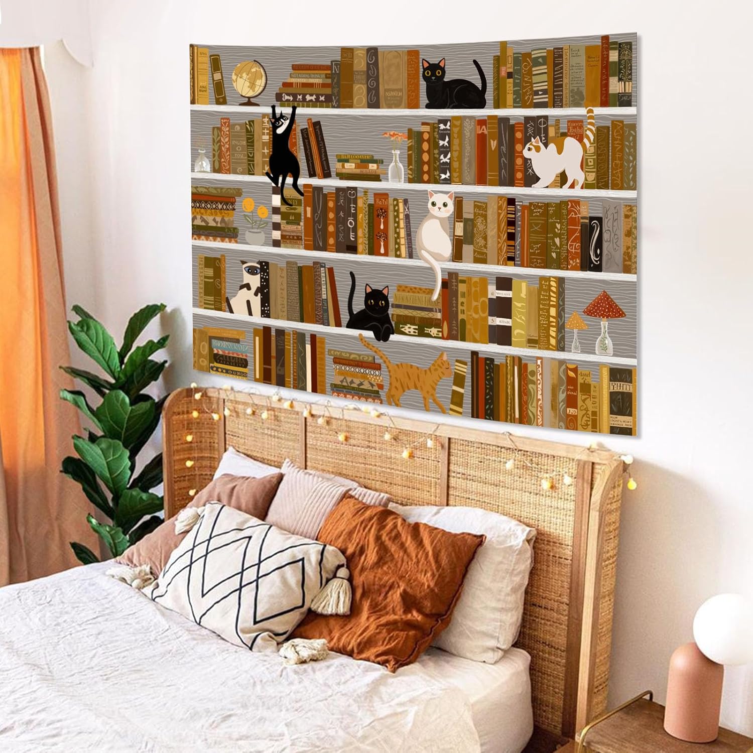 • High-Quality Material: Made from premium polyester fabric, this bookshelf cat tapestry is soft, durable, and easy to maintain. It can withstand daily use and retain its vibrant colors for a long time