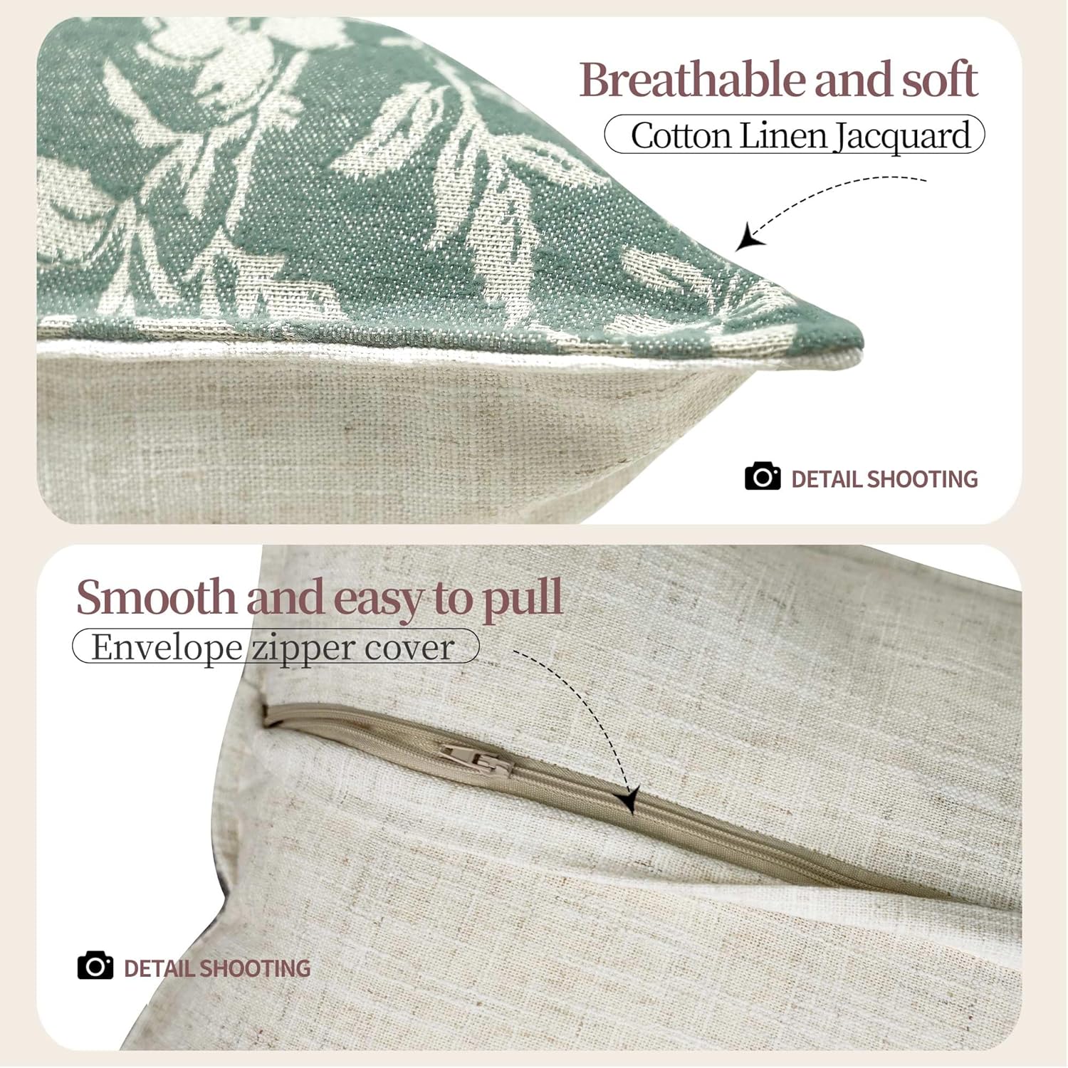 • Product & Style:2-pack 18"x18" floral covers (no inserts). Neutral green-white blooms blend with Modern/Farmhouse decor. UV-resistant for patio use. Instantly elevate sofa/bed with rustic elegance