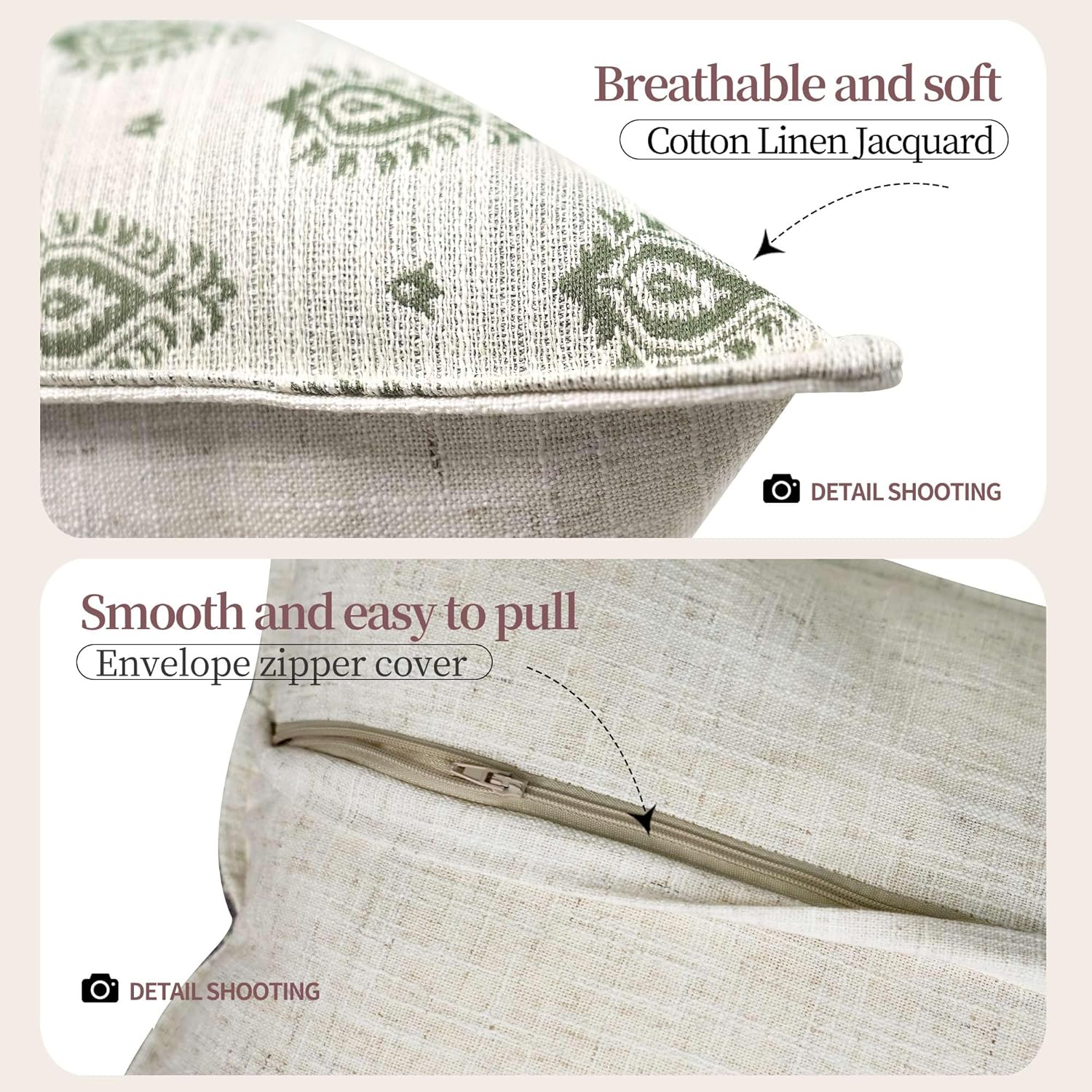 • Zipper Cover Design: The soft cotton throw pillow covers feature a zipper cover design. This design makes it extremely convenient to insert and replace the pillow inserts. Moreover, it can prevent the zipper from scratching your fingers during use. The zipper is well-hidden, making the pillowcase look more beautiful