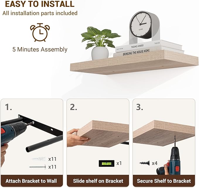 • 【Easy Installation】Designed with user convenience in mind, these shelves come with all necessary mounting hardware and clear instructions. You can have them up and ready to use in less than 5 minutes. Plus, our customer service is always ready to assist with any queries or concerns, ensuring a hassle-free experience