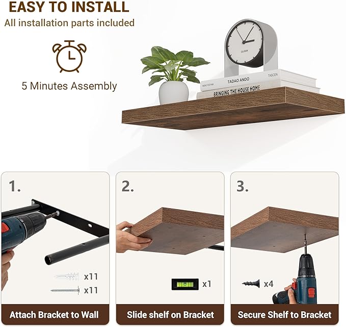 • 【Easy Installation】Designed with user convenience in mind, these shelves come with all necessary mounting hardware and clear instructions. You can have them up and ready to use in less than 5 minutes. Plus, our customer service is always ready to assist with any queries or concerns, ensuring a hassle-free experience