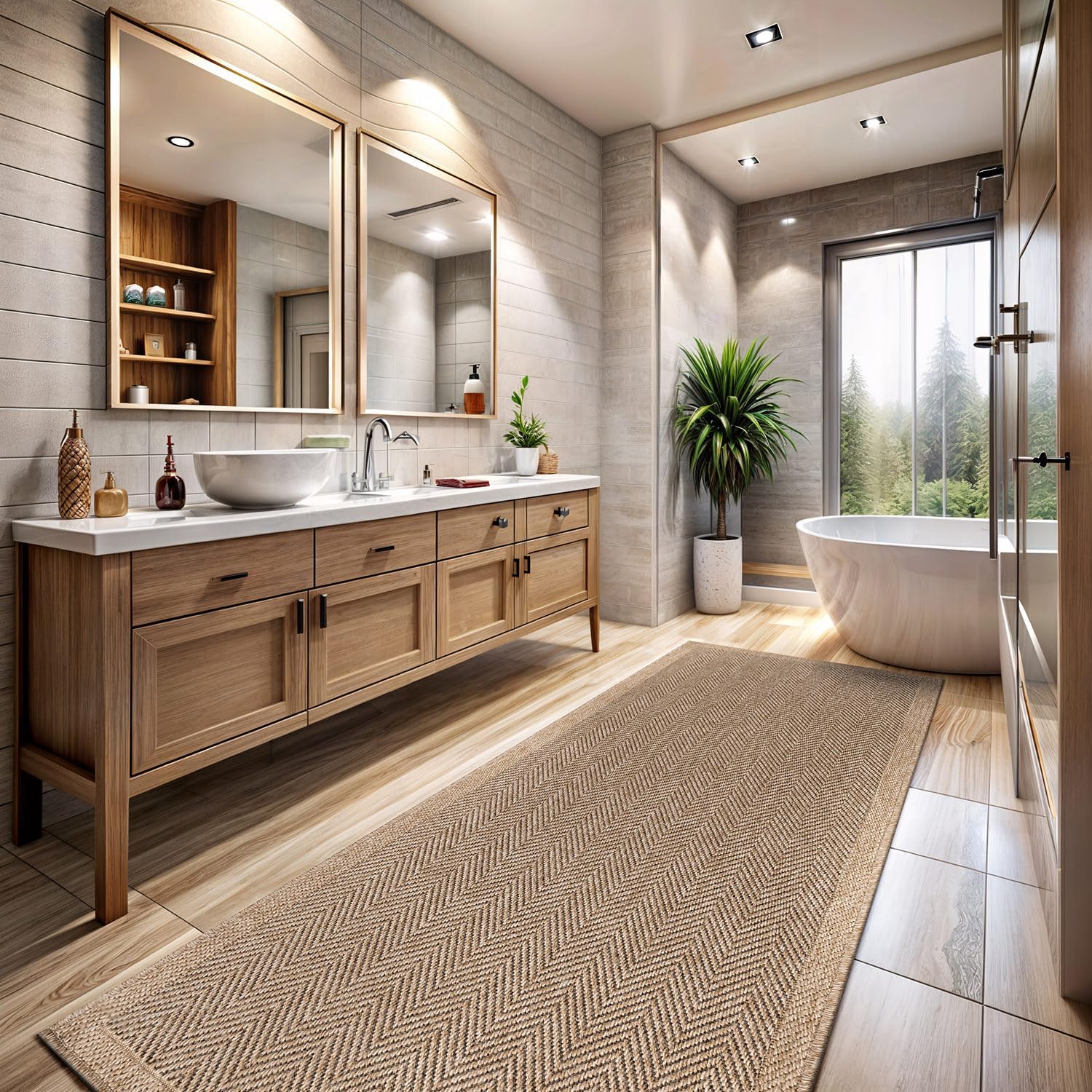 • [ EASY JUTE RUG ] Experience the enchantment of a resilient rug mimicking the appearance of natural jute, courtesy of our latest Easy-Jute rugs. (Jute-free in reality) Crafted from secure polypropylene, these rugs are resistant to cracking, ensuring they remain free from scratches, shedding, or unraveling over time.