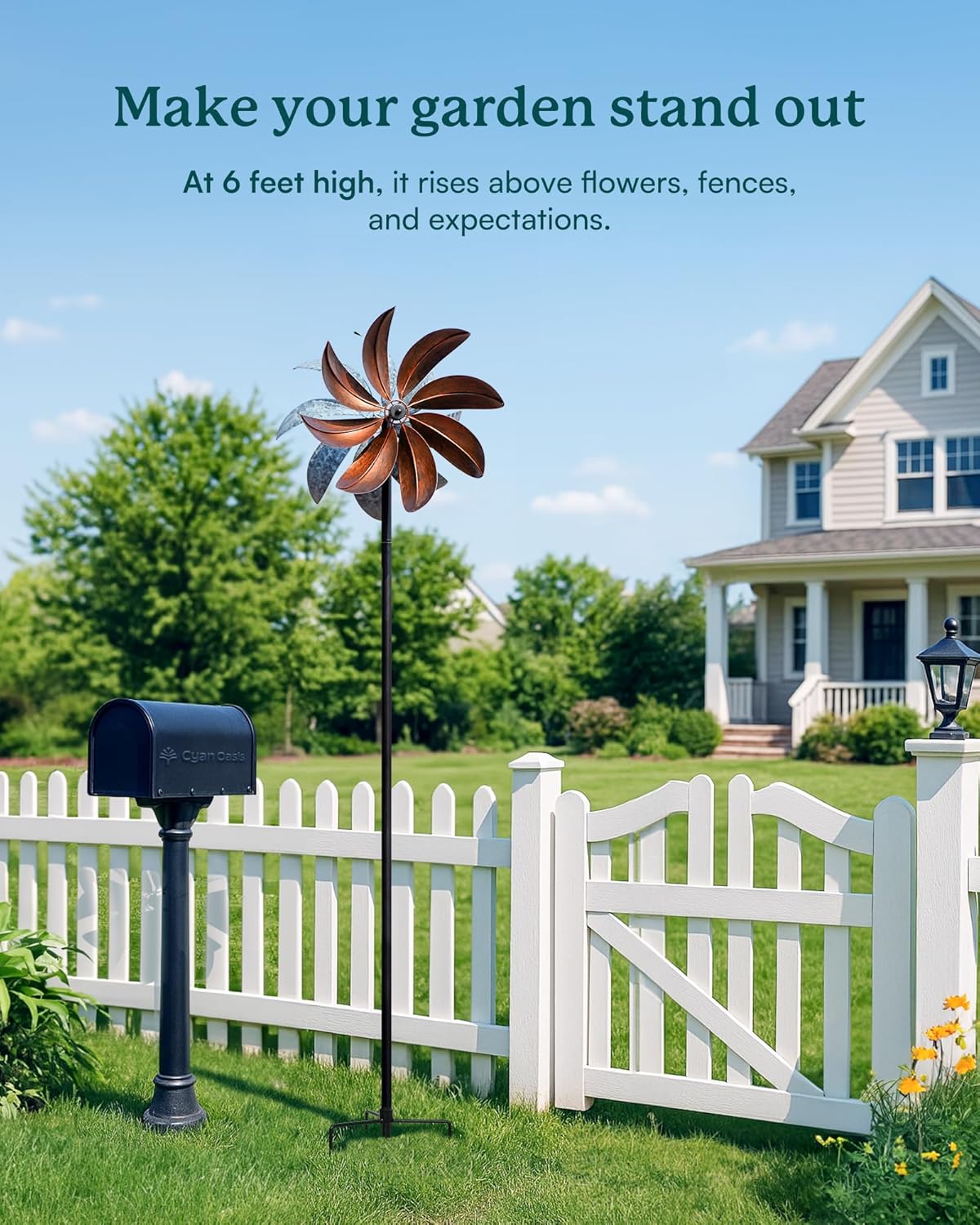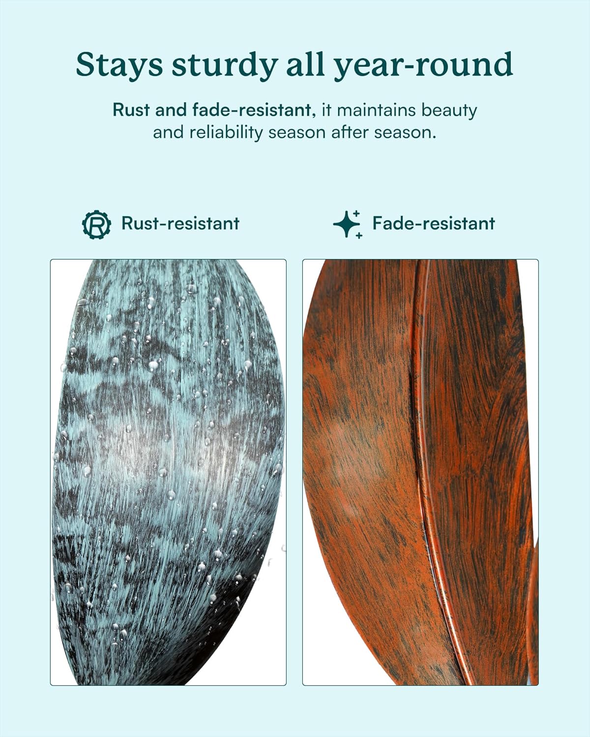 • Stays sturdy all year-round: Built with all-metal construction and weather-resistant paint, this wind spinner is waterproof, fade-proof, and designed to withstand harsh conditions. Its thicker, heavier blades resist strong winds without bending or deforming.