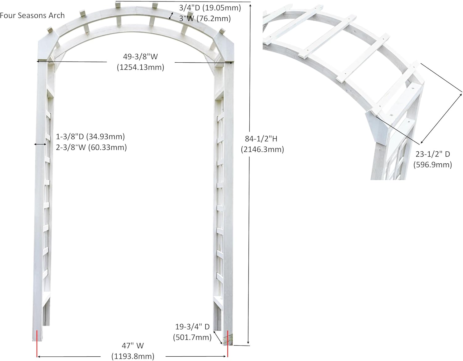 • Solid Wood Material: Constructed entirely from solid, high-quality fir wood, this archway features low-density yet high-strength fir boards. This unique combination offers excellent load-bearing capabilities while keeping the structure lightweight and maintaining good stability and durability. It is built to last, requiring minimal maintenance—just regular surface cleaning will suffice
